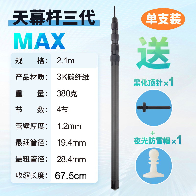• MAX 캐노피로드 2.1 미터 + 골무 + 캡 + 플러그인 고정 세트 3 세대