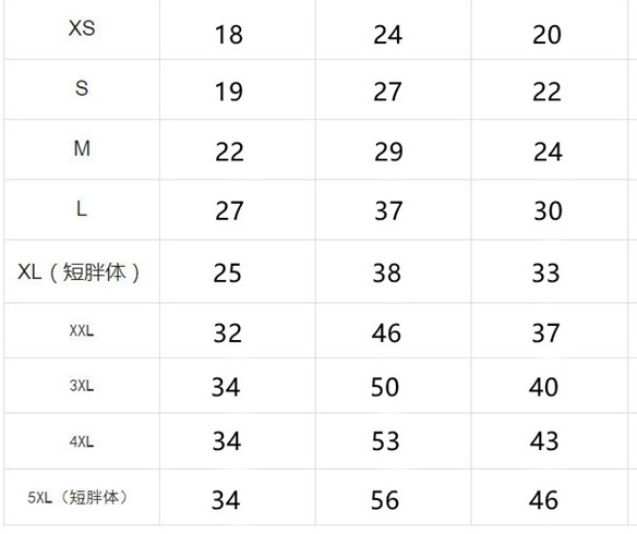 尺码 衣长 胸围 颈围