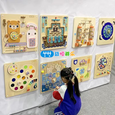 유치원 복도 나무 벽 장난감 어린이 공원 부모-자식 레스토랑 벽 장식 게임인지 조작 보드