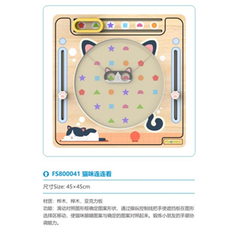 产品特点:游戏板可固定在幼儿园的走廊、过道、房间墙面上,不占空间,是很好的装饰游戏产品。通过游戏,可以提高孩子的手指灵活性和观察力,适合幼儿园、亲子园、早教中心、幼教培训机构等儿童活动场所。