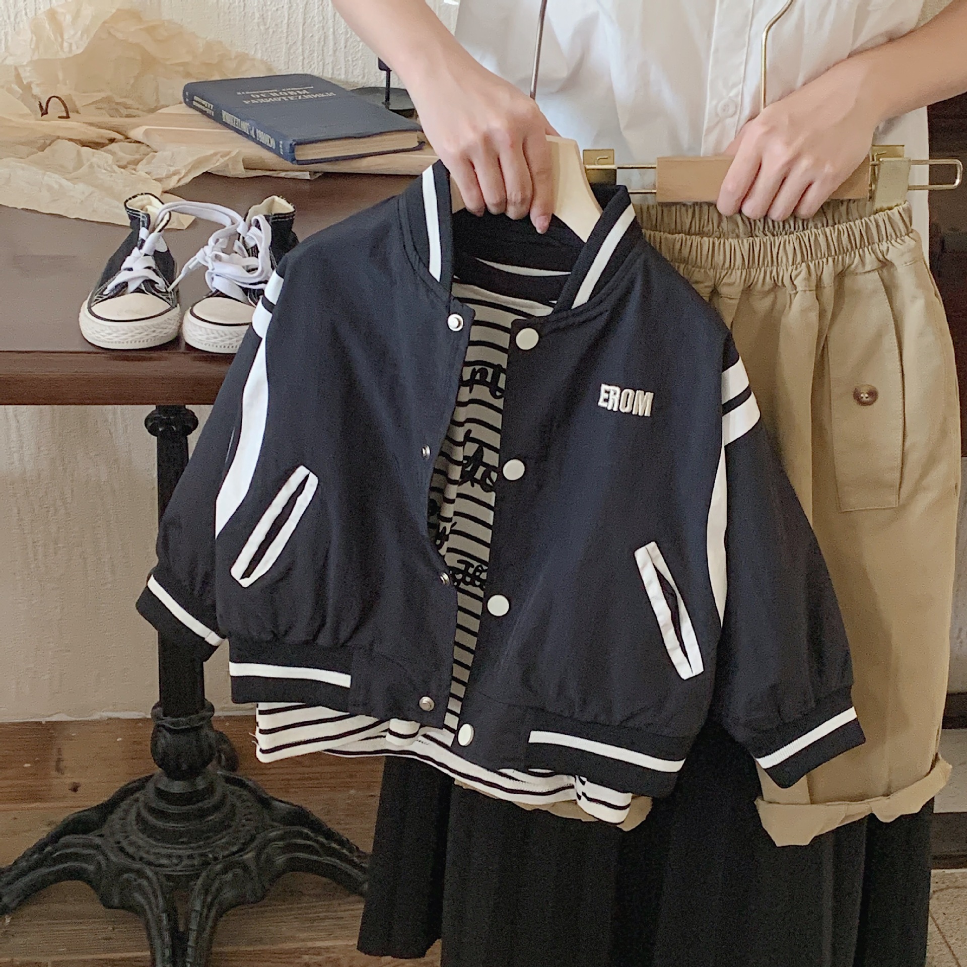 아동 코트 2025 Bangcheng 가을 한국 스타일 자수 트렌디 쿨 레터 자켓 캐주얼 코트 F0383