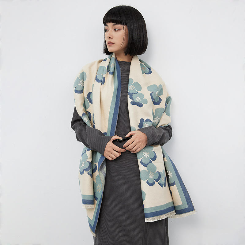 가을과 겨울 새로운 색상 매칭 모든 매치 캐시미어 스카프 유럽과 미국 스타일 따뜻한 목 꽃 술 우아한 여성용 숄스토어 가기