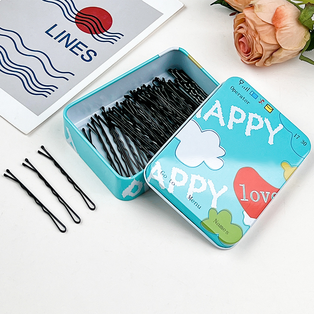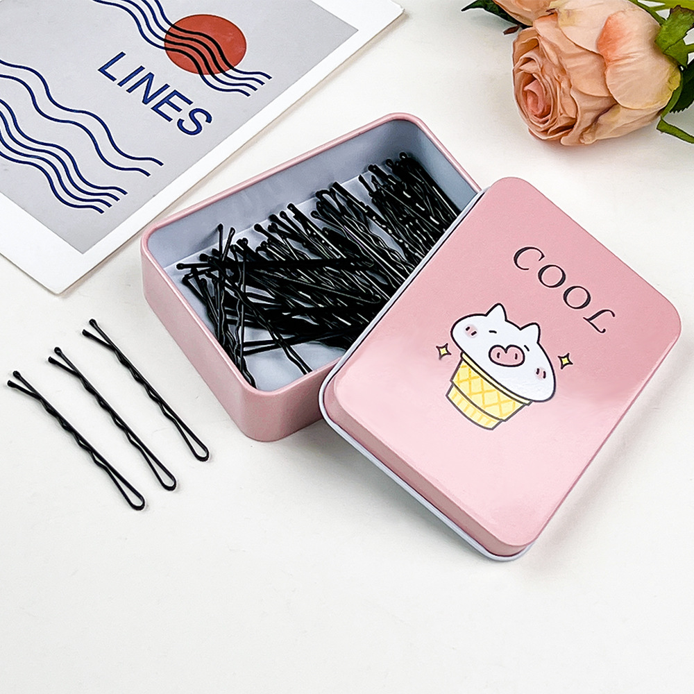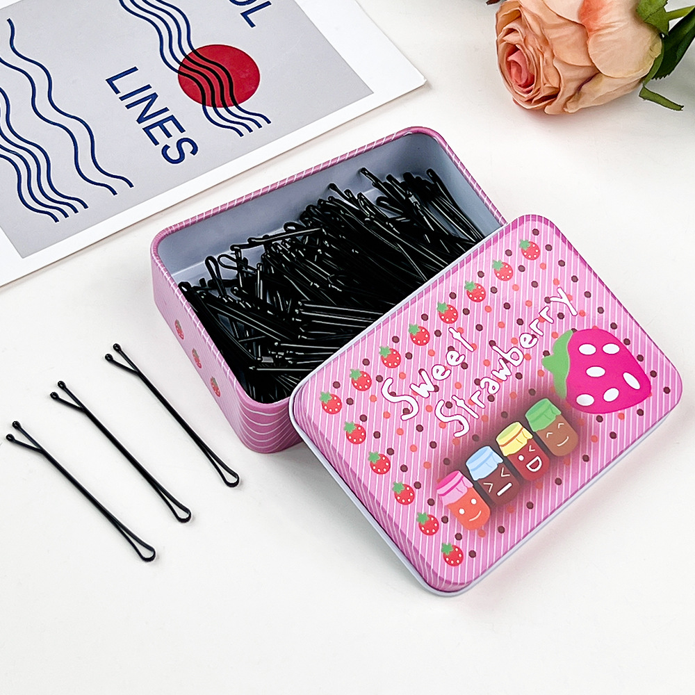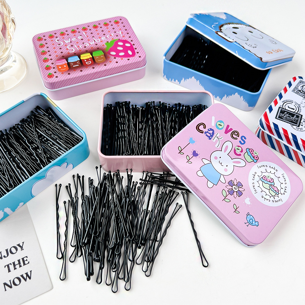 새로운 검은 클립 머리핀 50 카드 다리미 박스형 머리핀 귀여운 소녀 심장 앞머리 깨진 머리 클립