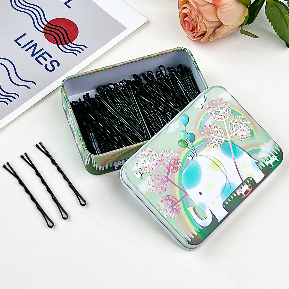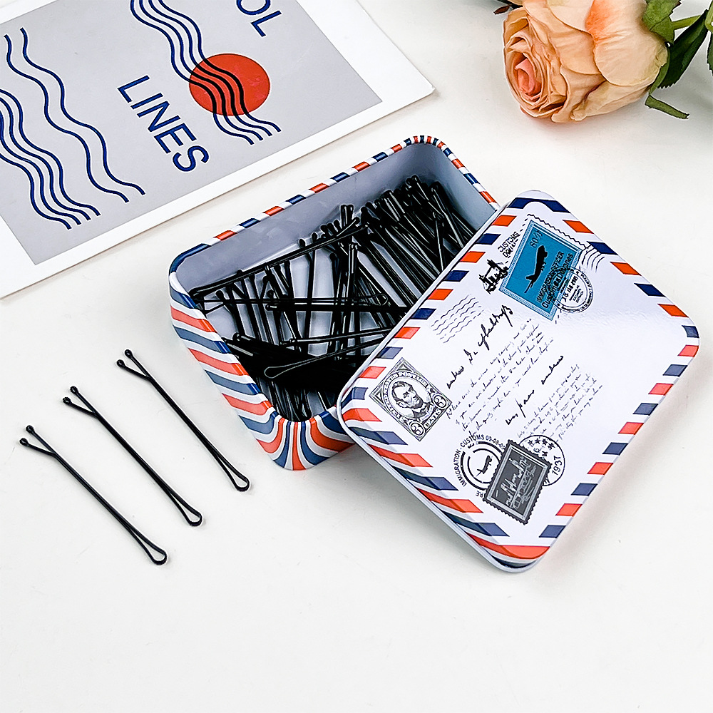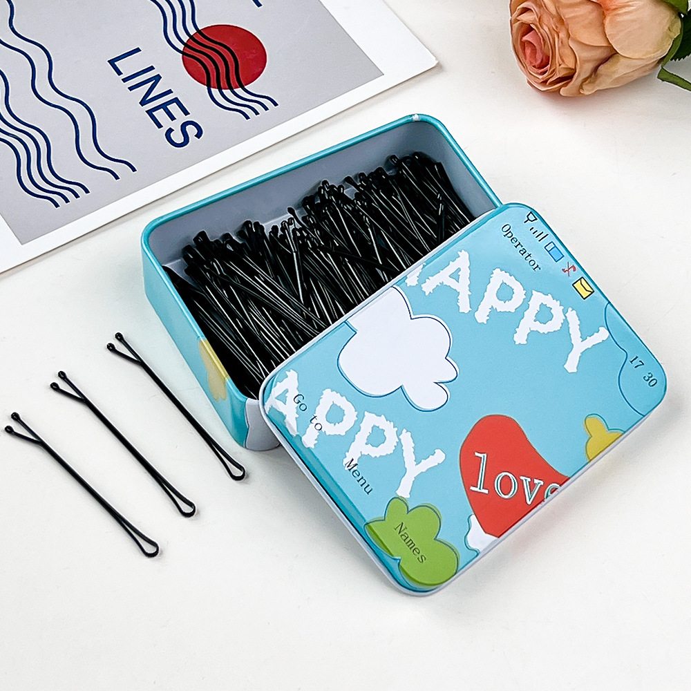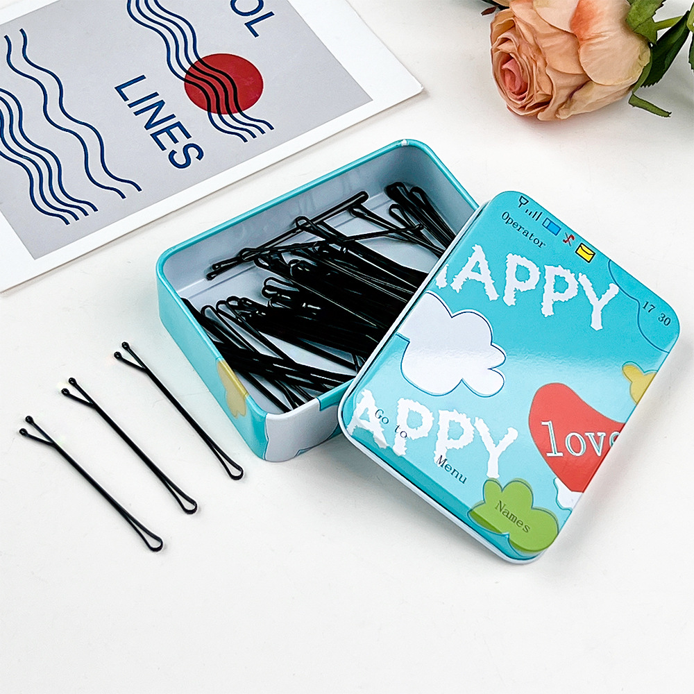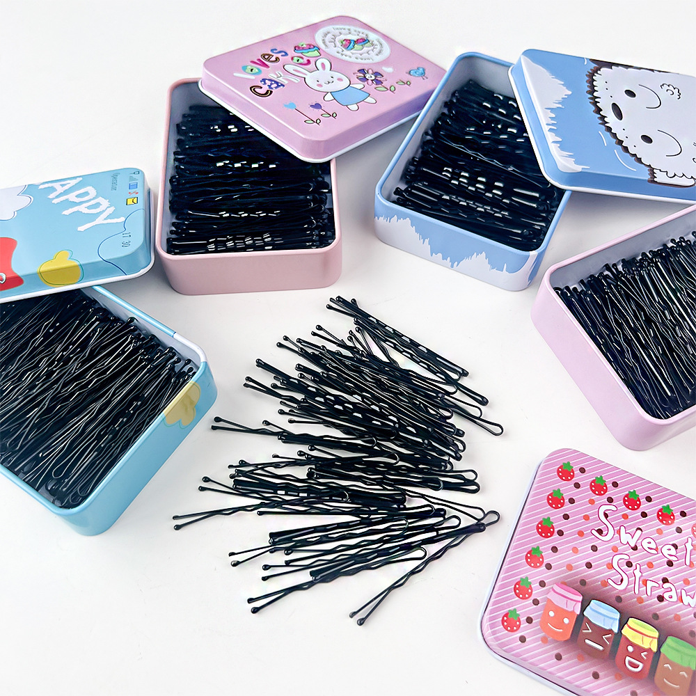 새로운 검은 클립 머리핀 50 카드 다리미 박스형 머리핀 귀여운 소녀 심장 앞머리 깨진 머리 클립
