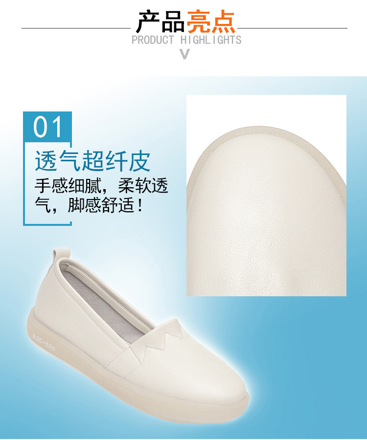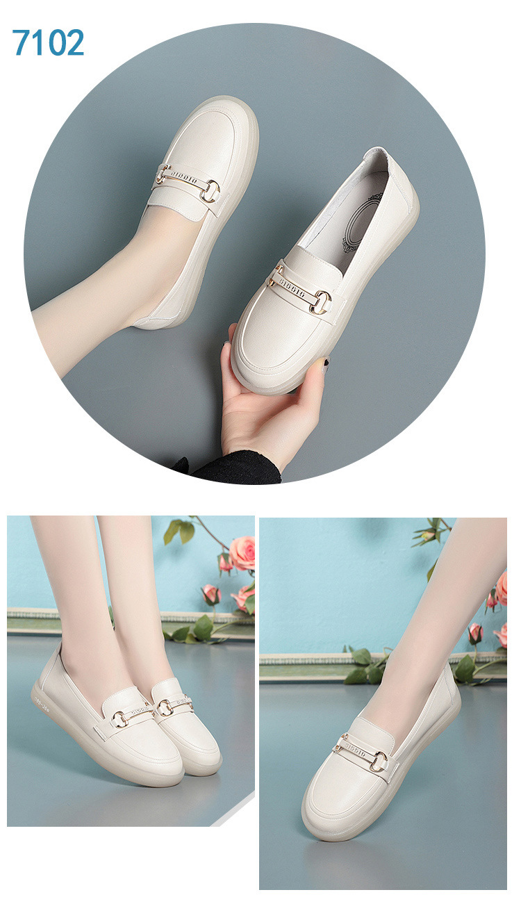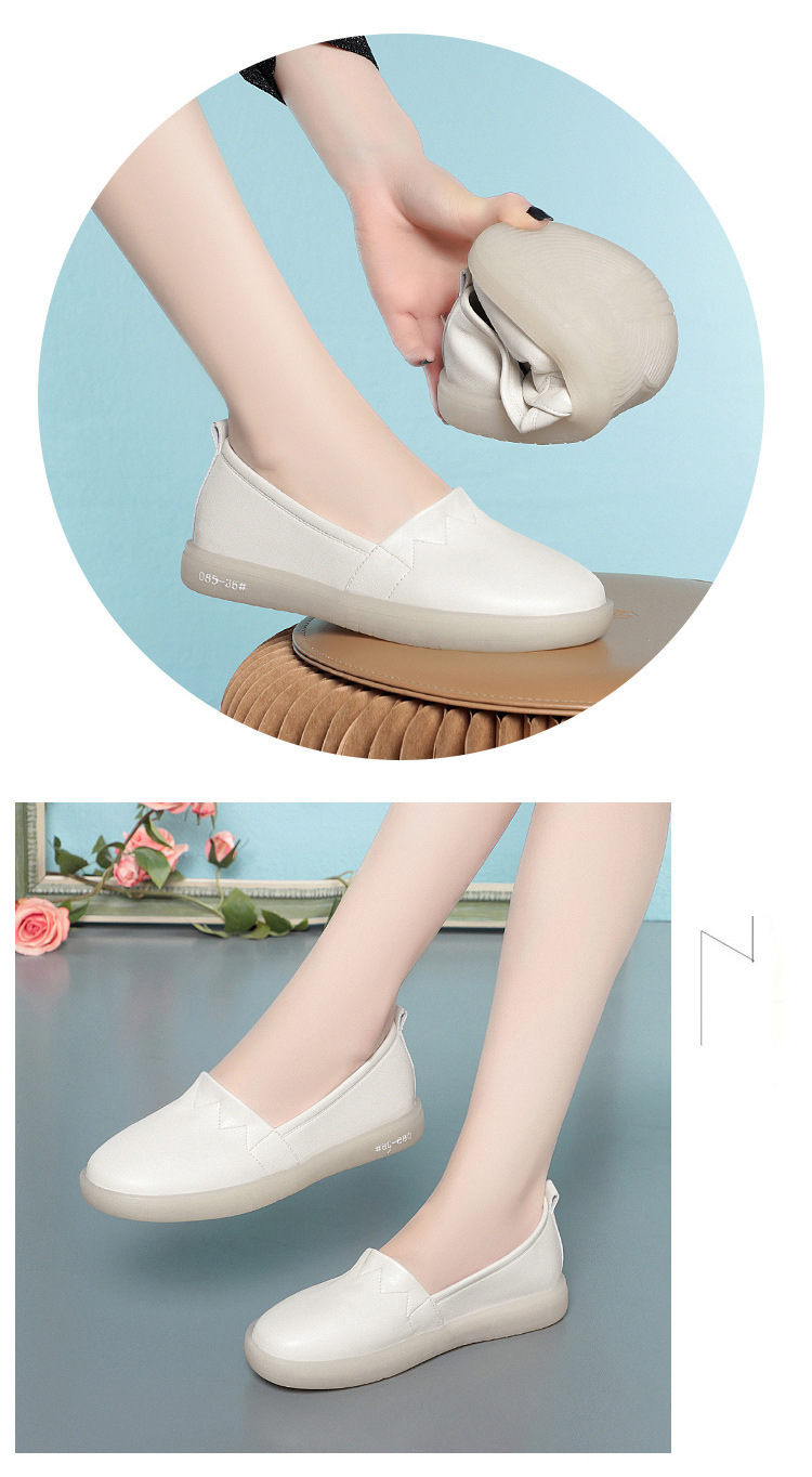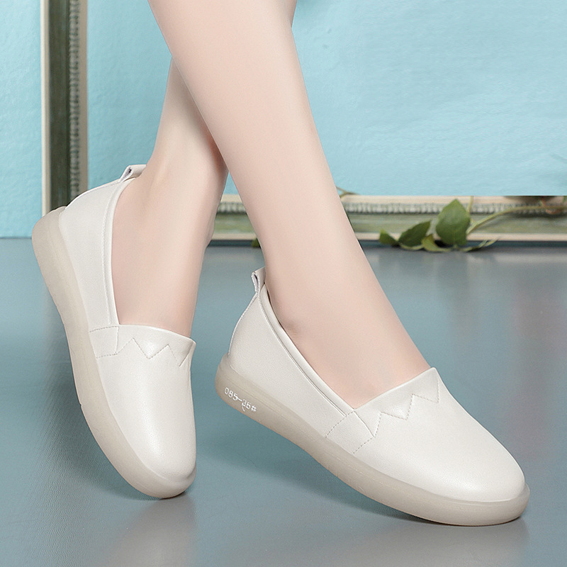 아이보리 간호사 신발 여성용 가죽 신발 부드러운 밑창 통기성 피곤하지 않은 발 싱글 레이어 신발 편안한 플랫 미끄럼 방지 의료 신발 슬립온