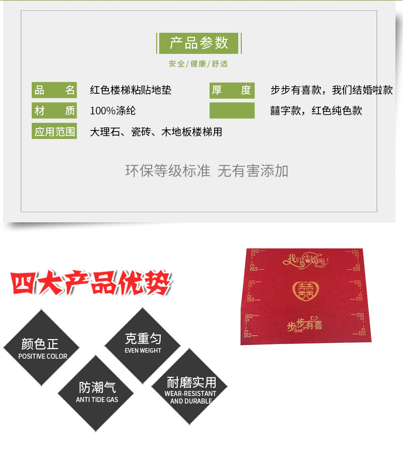 새로운 중국 스타일 웨딩 계단 스텝 매트 미끄럼 방지 매트 장식 해피 캐릭터 내마모성 미끄럼 방지 계단 매트 단계 축제 카펫