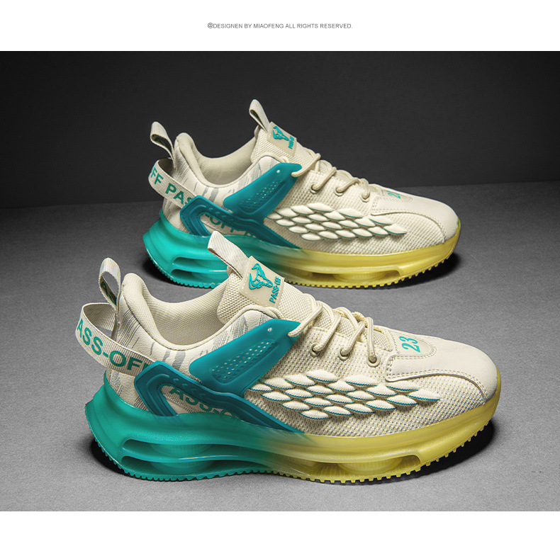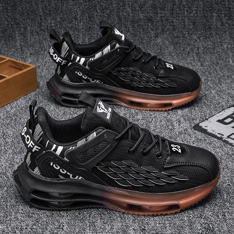 남자 신발 2023 여름 새로운 두꺼운 밑창 메쉬 플라이-짠 통기성 미끄럼 방지 트렌디 남성 아빠 높이 증가 스포츠 러닝화