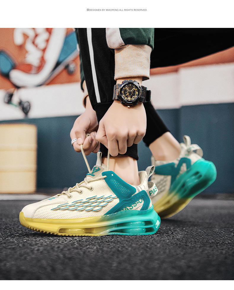 남자 신발 2023 여름 새로운 두꺼운 밑창 메쉬 플라이-짠 통기성 미끄럼 방지 트렌디 남성 아빠 높이 증가 스포츠 러닝화스토어 가기