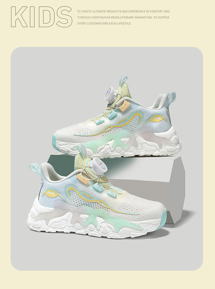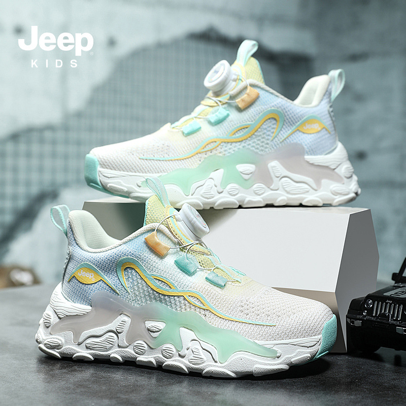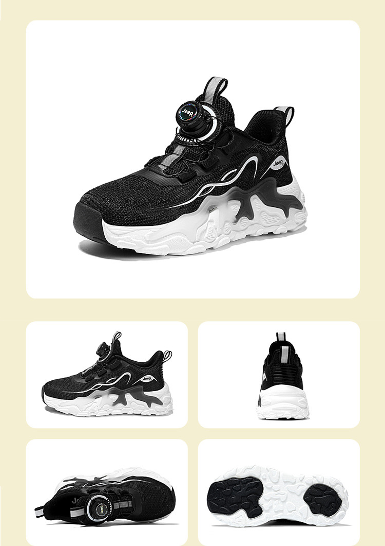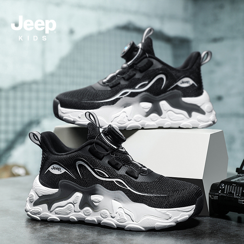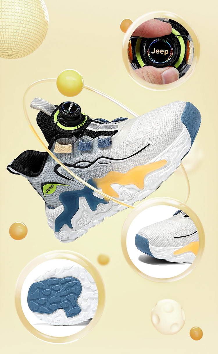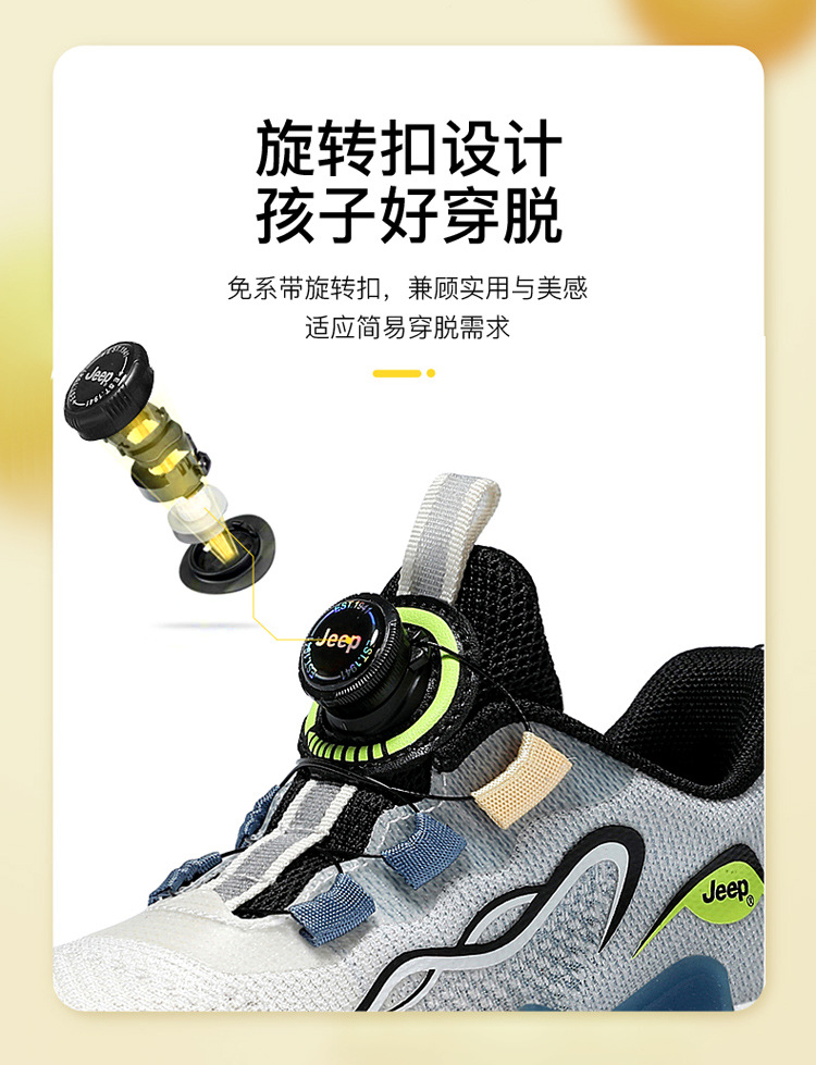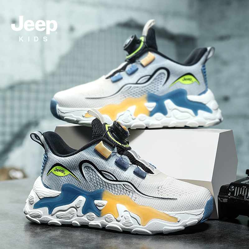 지프 어린이 운동화 2023 가을 소년을위한 새로운 회전 버튼 미끄럼 방지 부드러운 바닥 메쉬 통기성 운동화