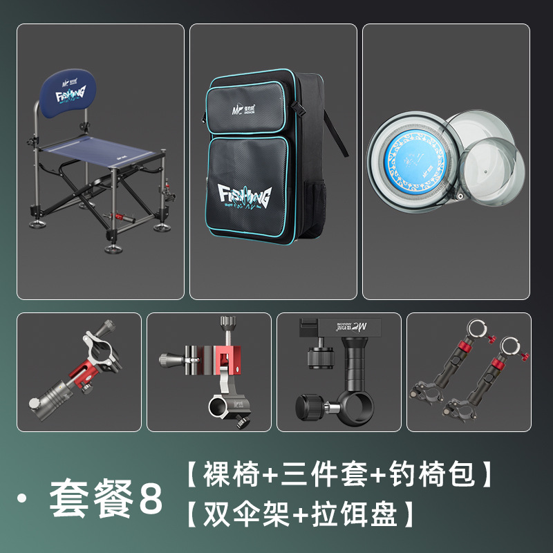 • 기사 낚시 의자 + 미끼 트레이 랙 + 물고기 가드 랙 + 터렛 랙 + 낚시 의자 가방 + 이중 우산 랙