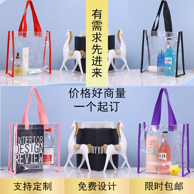 재고 클리어 PVC 토트백 도매 비닐 포장 가방 맞춤 수 놓은 토트백 화장품 쇼핑백스토어 가기