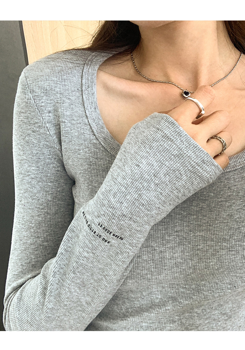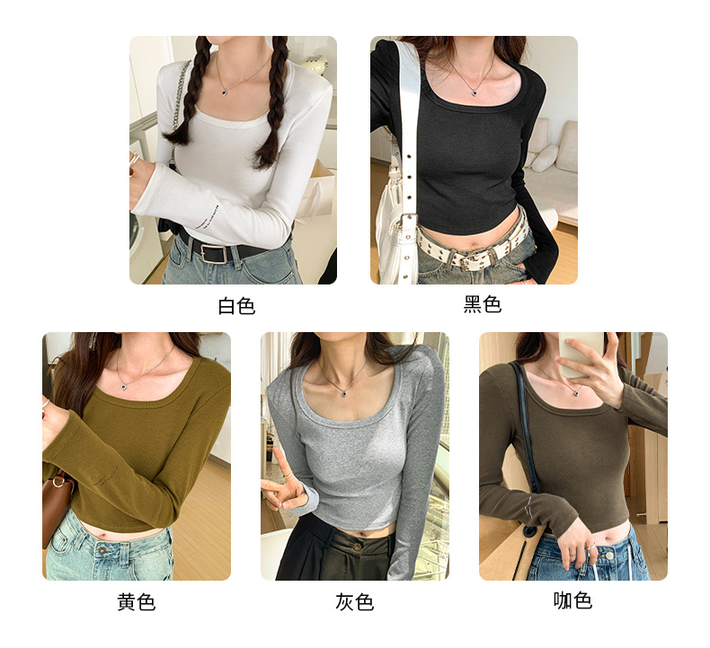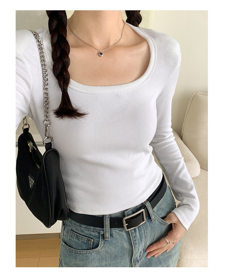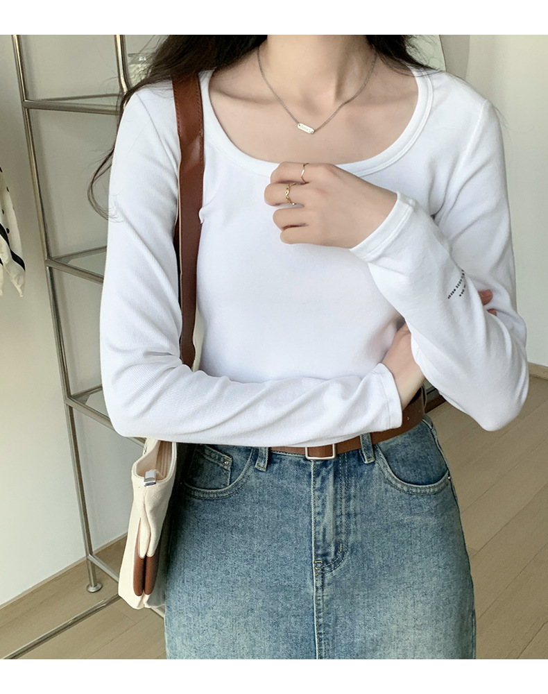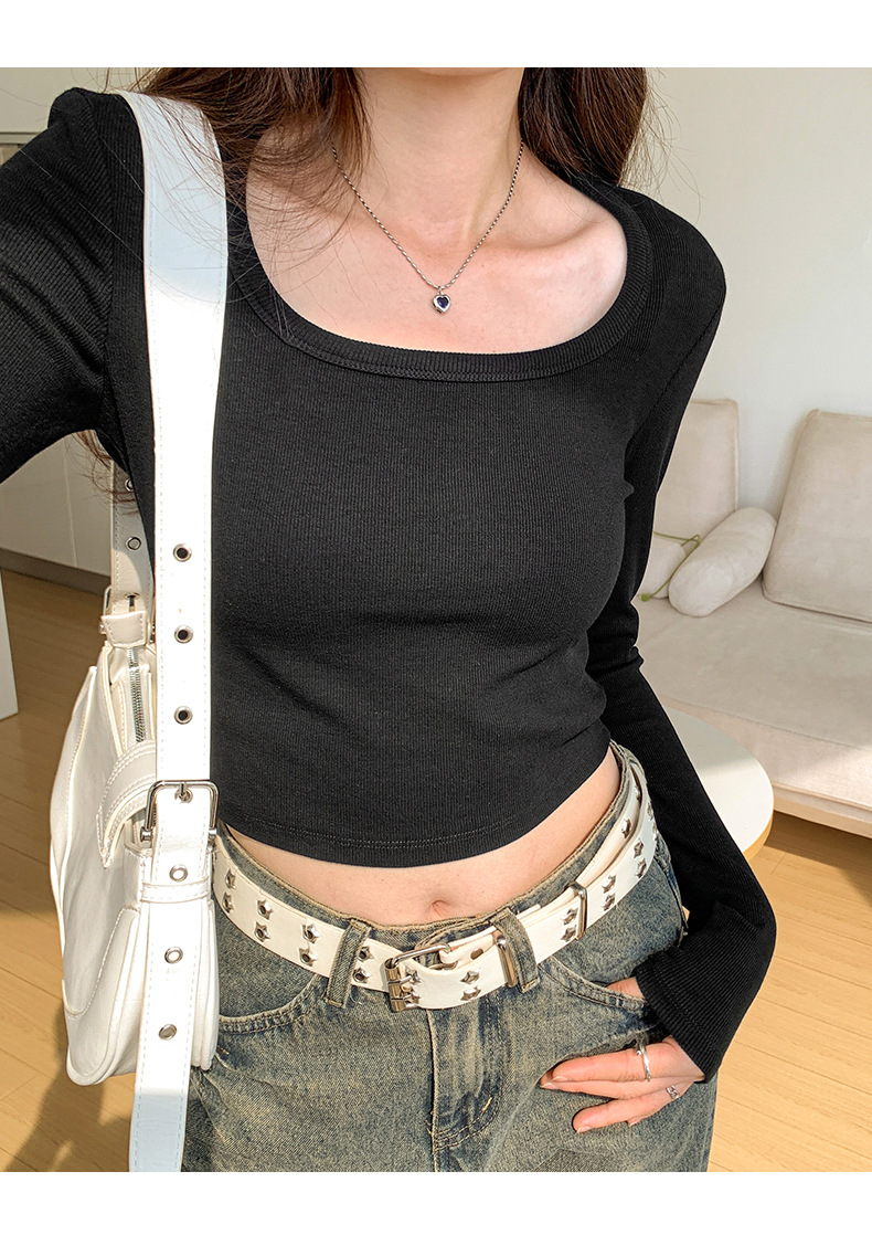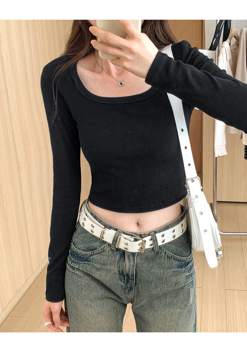 스파이스 걸스 숄더 패드 쇄골 긴팔 티셔츠 여성 가을 2023 새로운 슬림핏 솔리드 컬러 이너베이스 셔츠 탑 트렌디