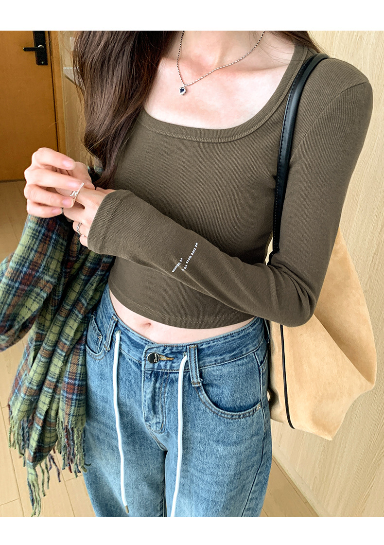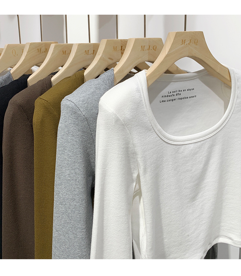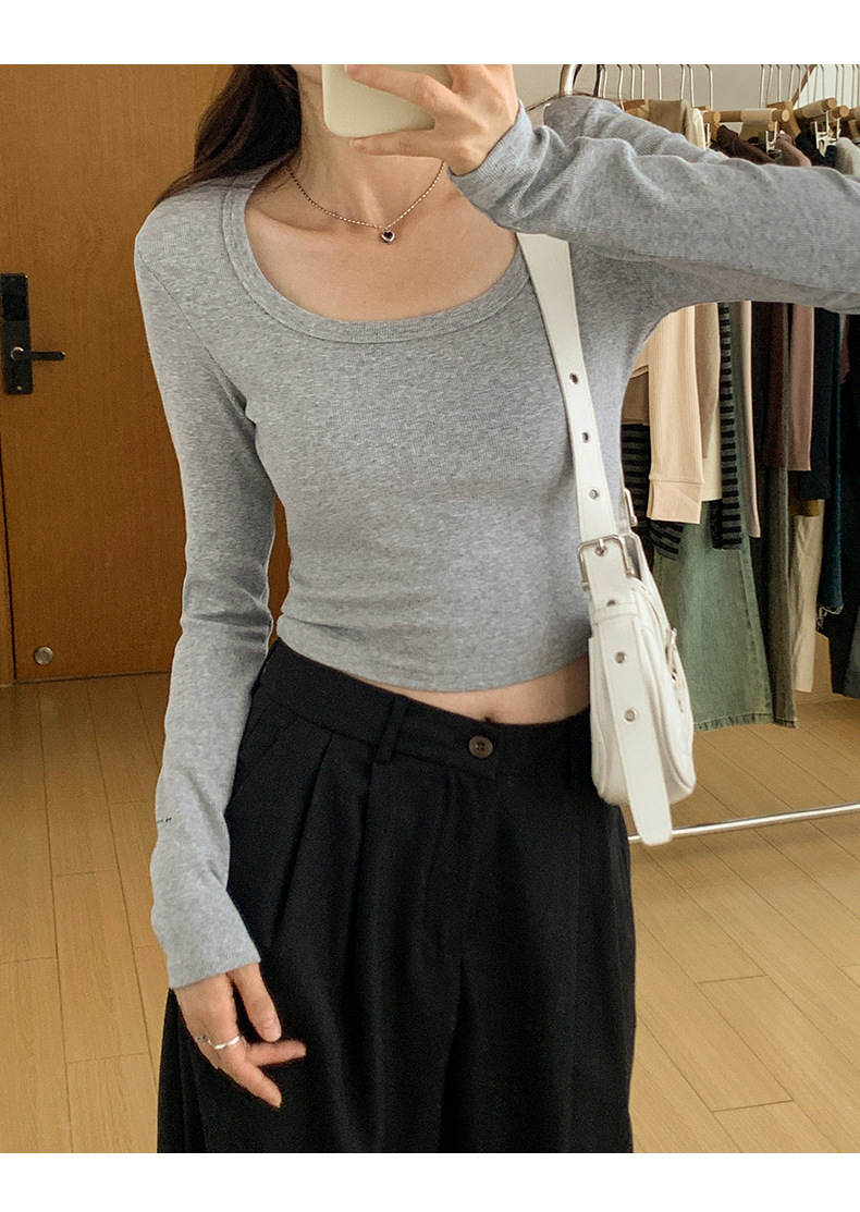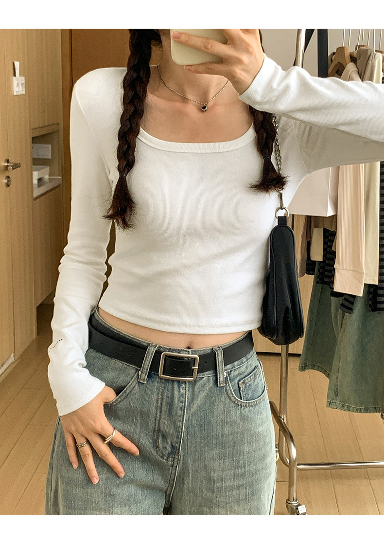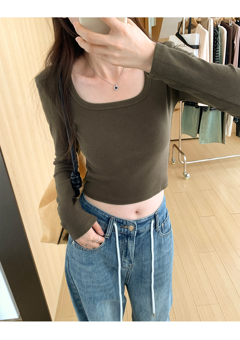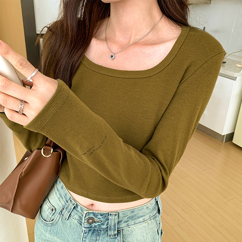 스파이스 걸스 숄더 패드 쇄골 긴팔 티셔츠 여성 가을 2023 새로운 슬림핏 솔리드 컬러 이너베이스 셔츠 탑 트렌디스토어 가기