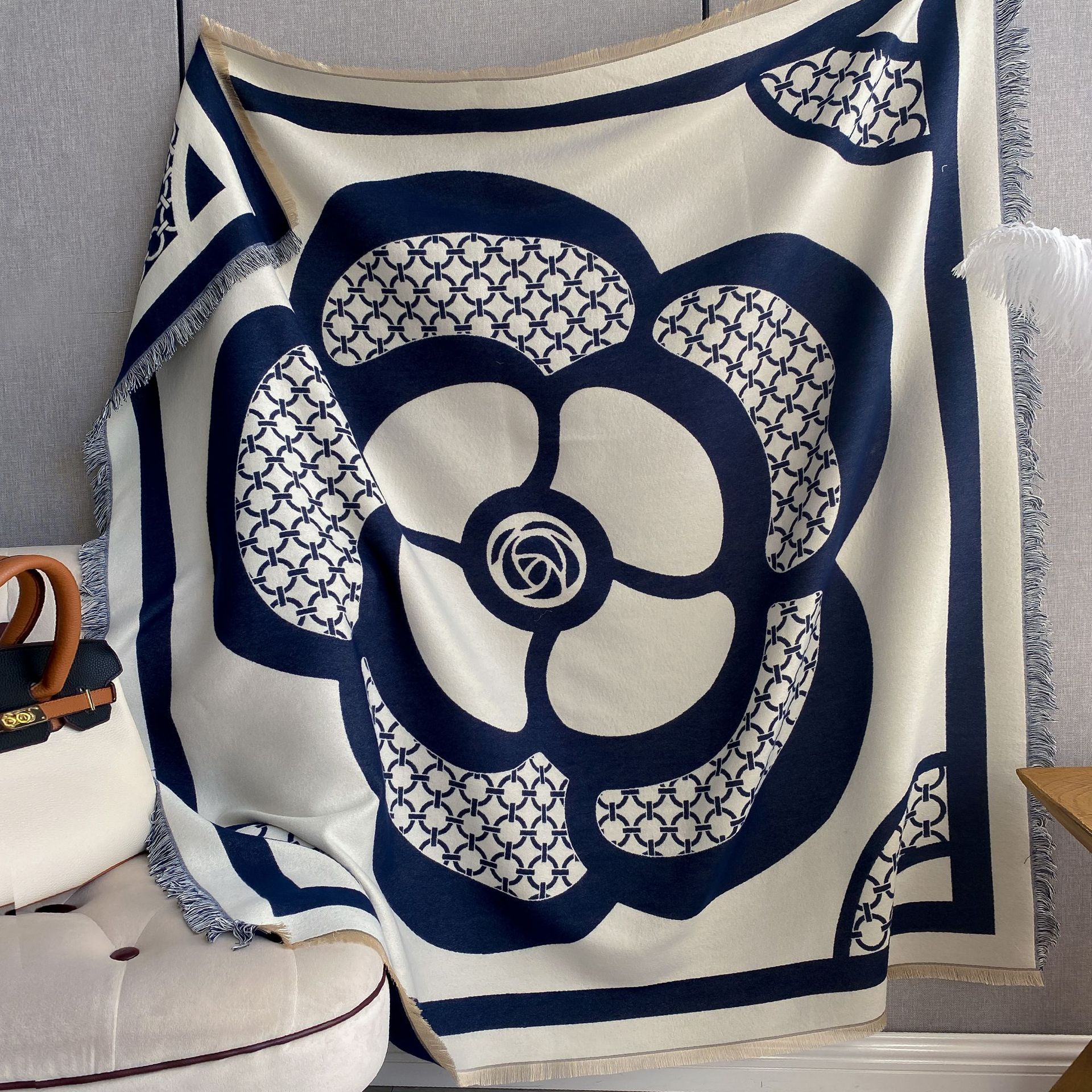2023 한국 스타일 하이 엔드 동백 스카프 유행 외부 착용 따뜻한 사각 스카프 여행 장식 모조 캐시미어 숄 여성