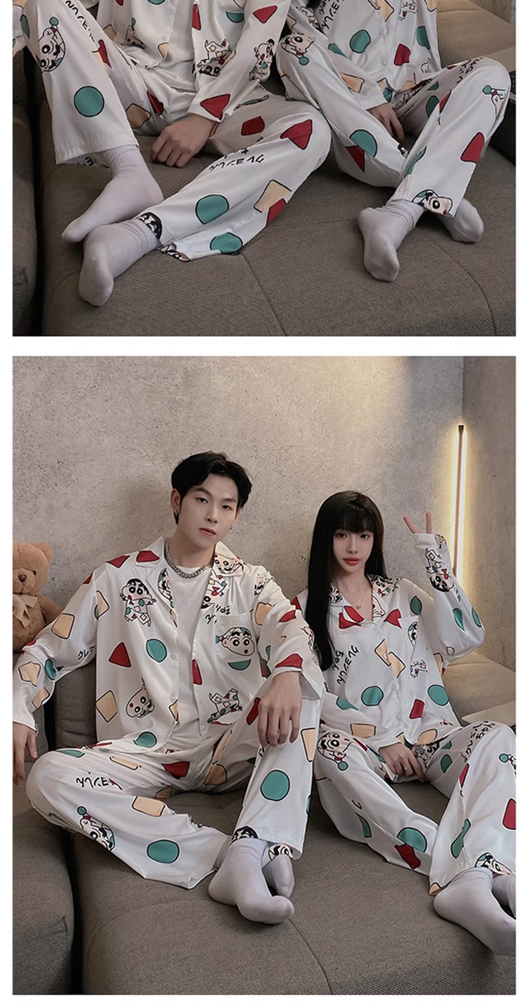 2024 새로운 커플 잠옷 여성의 가을 아이스 실크 긴 소매 바지 남성 봄과 가을 외부 착용 홈 의류 세트
