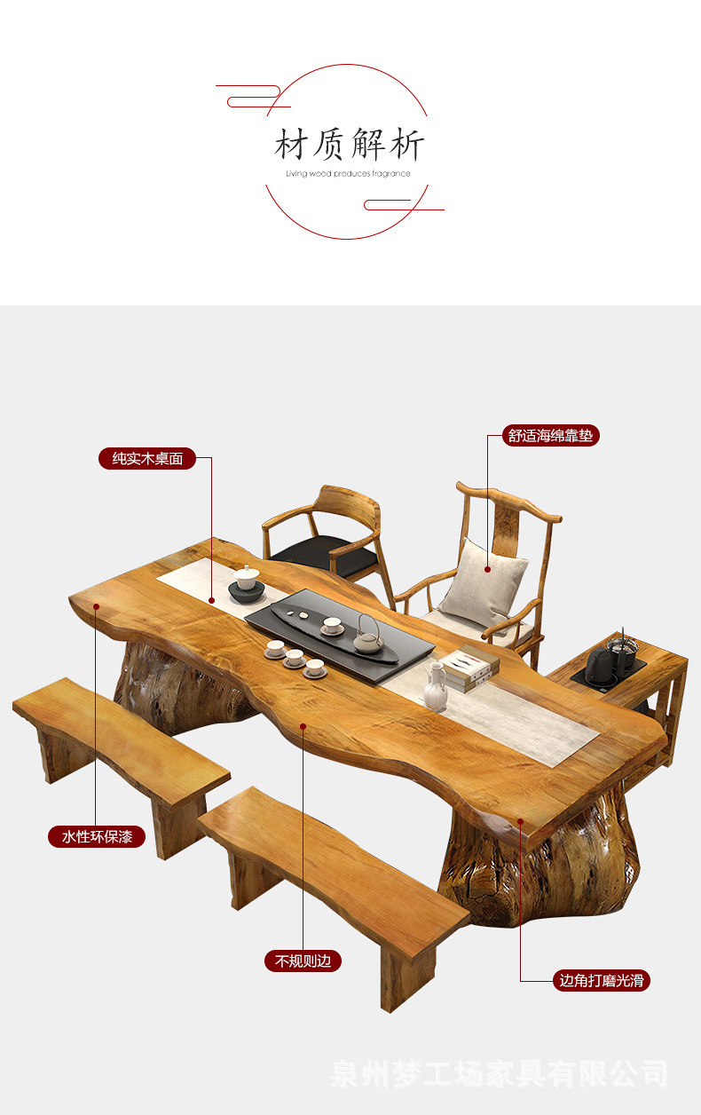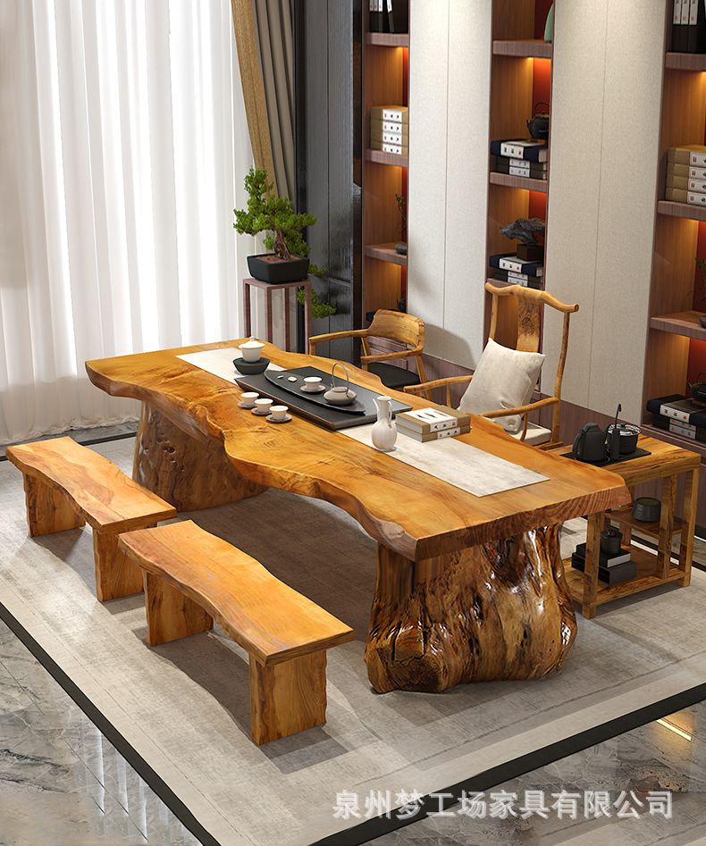 새로운 중국 스타일 단단한 나무 차 테이블 홈 대형 보드 리셉션 사무실 티 테이블과 의자 조합 젠 티 하우스 로그 티 테이블스토어 가기