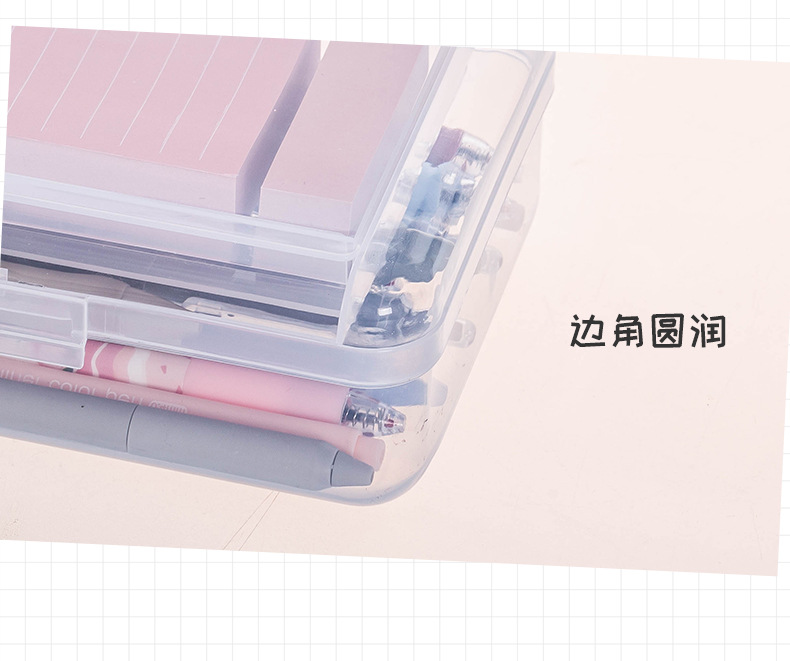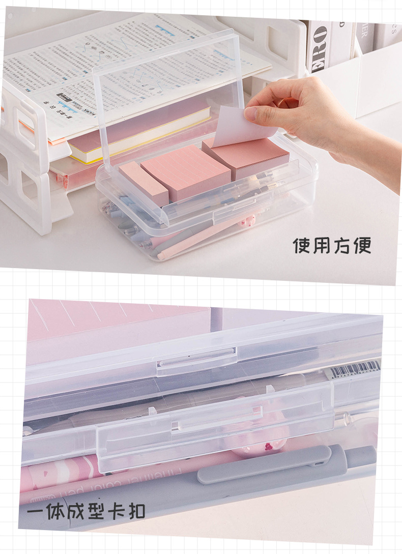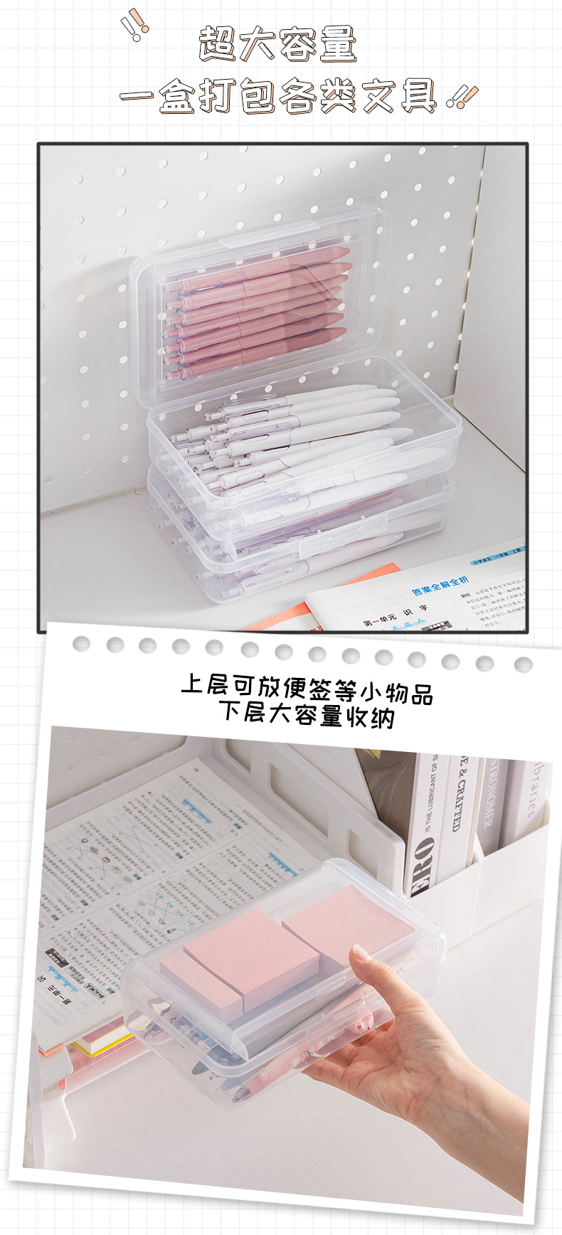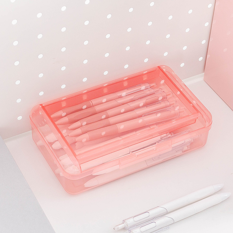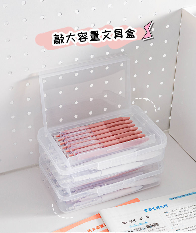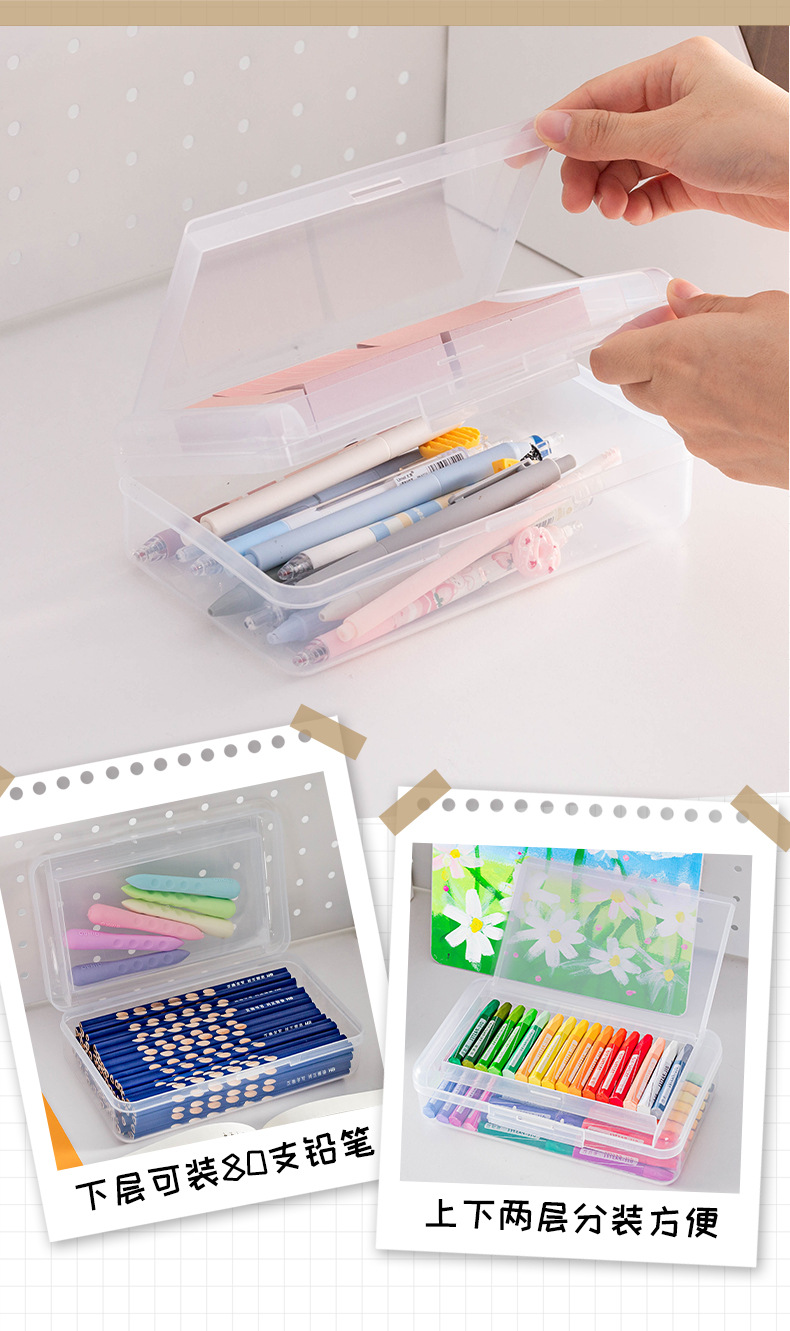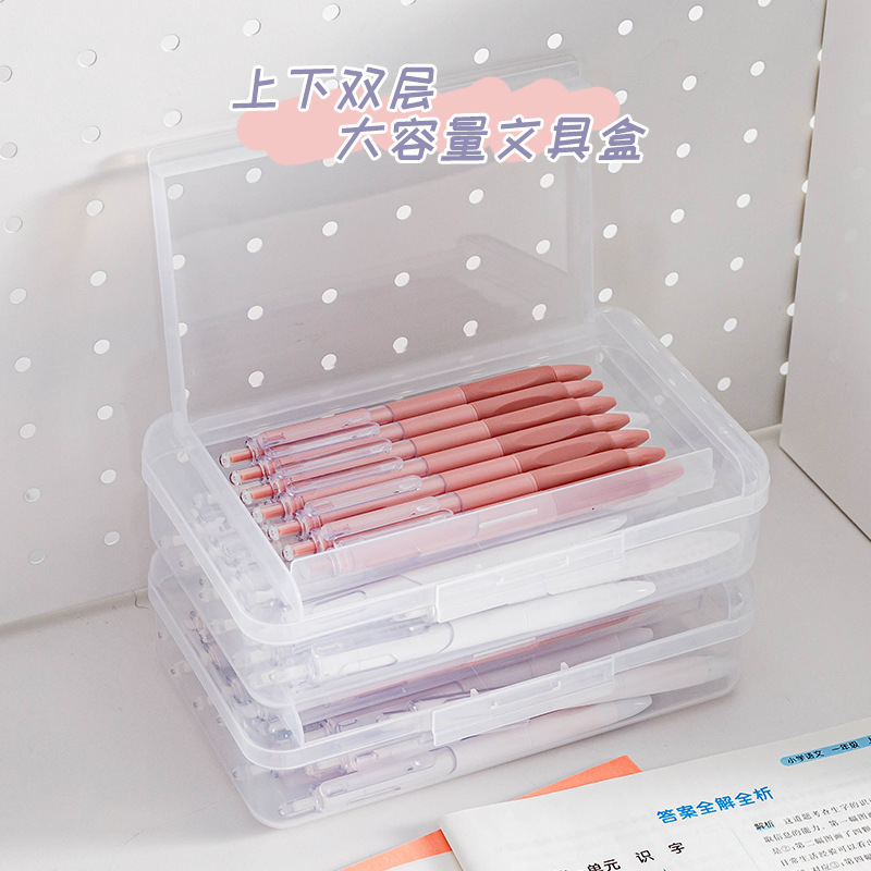 투명 2 중 문구 상자 대용량 플라스틱 필통 심플 학생 필통 마커 크레용 보관 상자