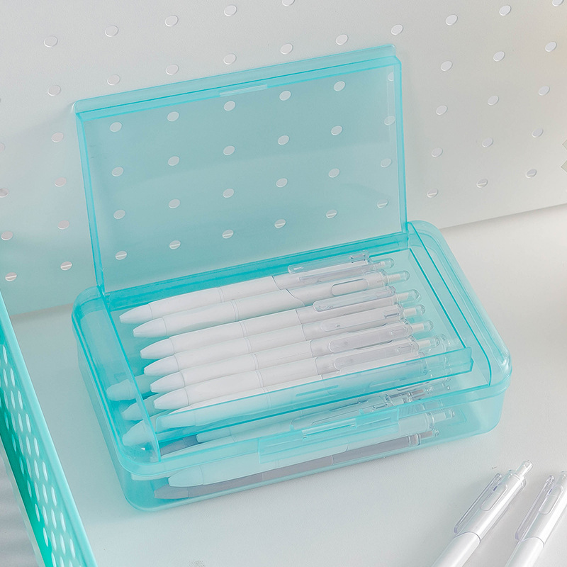 투명 2 중 문구 상자 대용량 플라스틱 필통 심플 학생 필통 마커 크레용 보관 상자스토어 가기