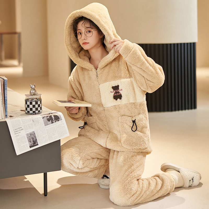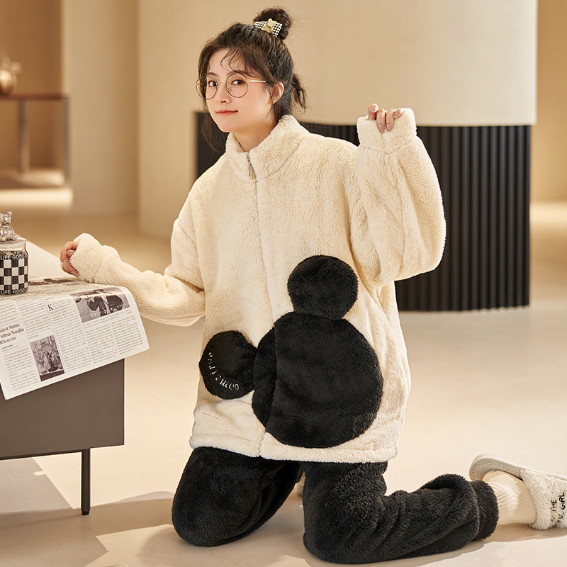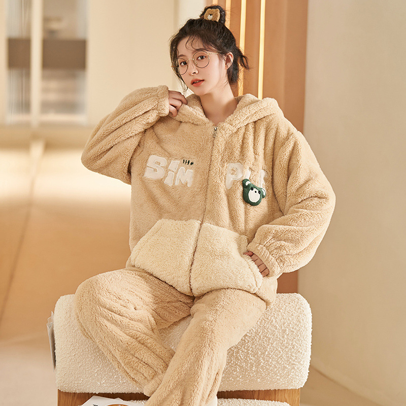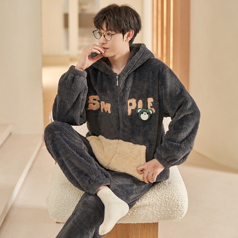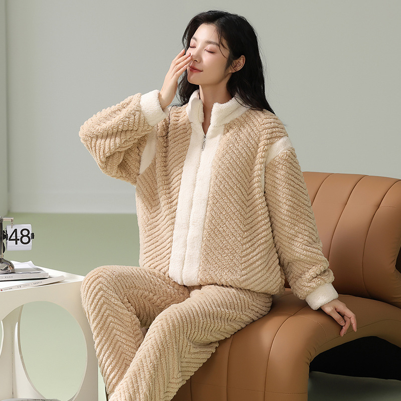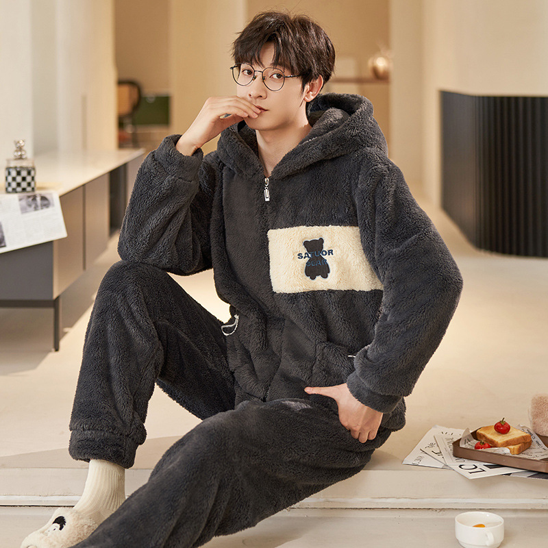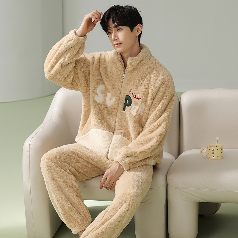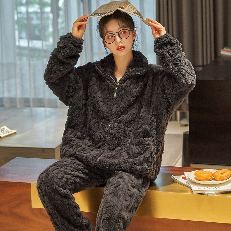 Caini 잠옷 여자의 겨울 산호 양털 지퍼 칼라 플란넬 남자 카디건 따뜻한 커플의 가정 의류스토어 가기
