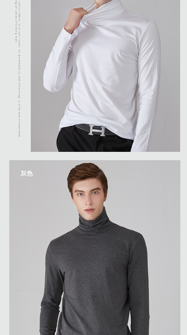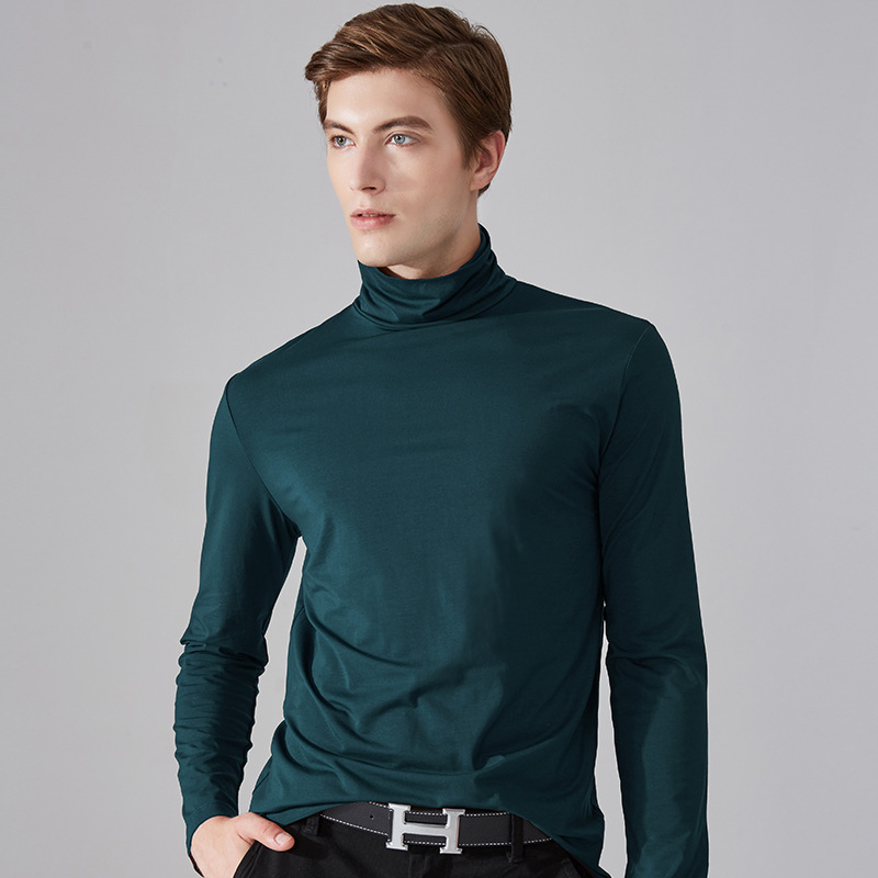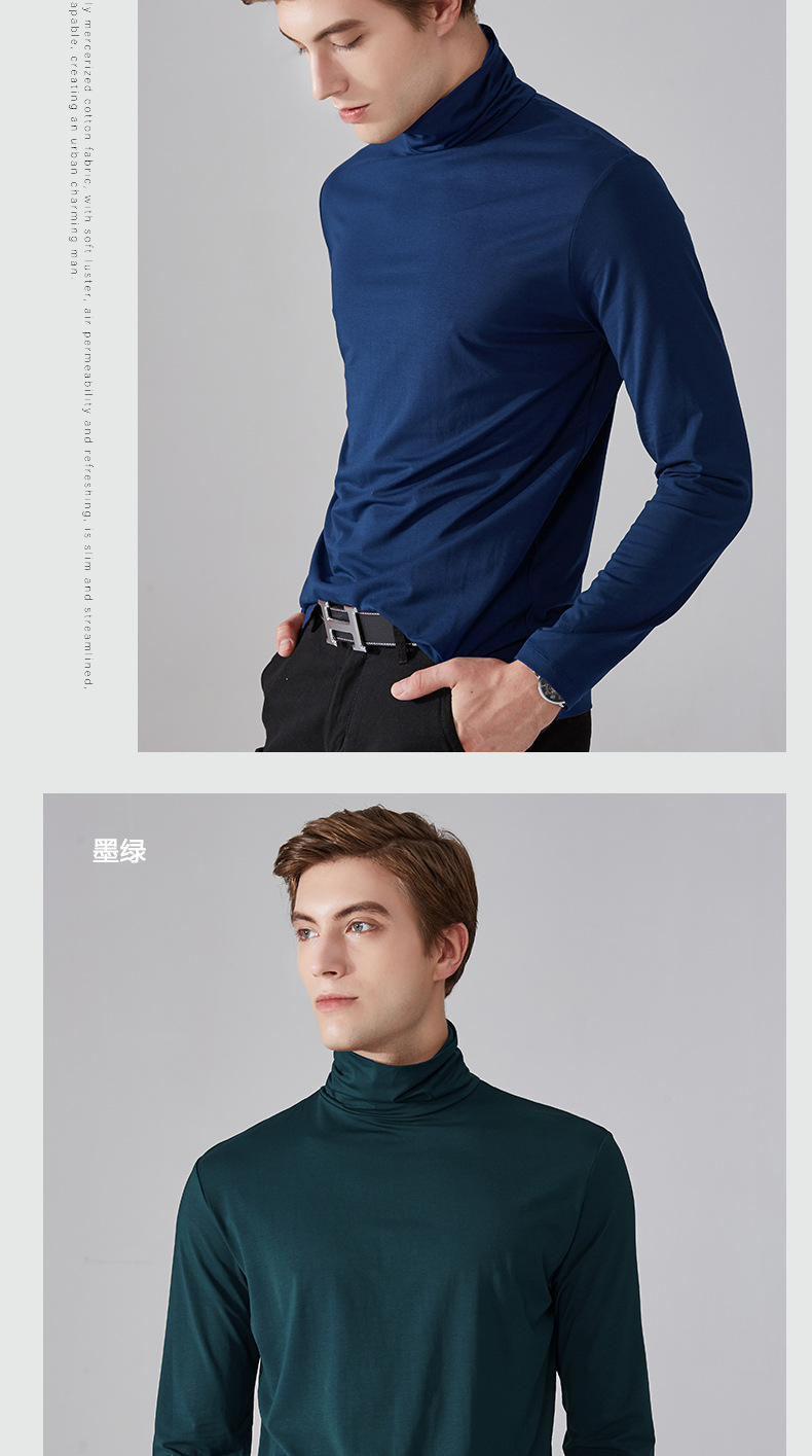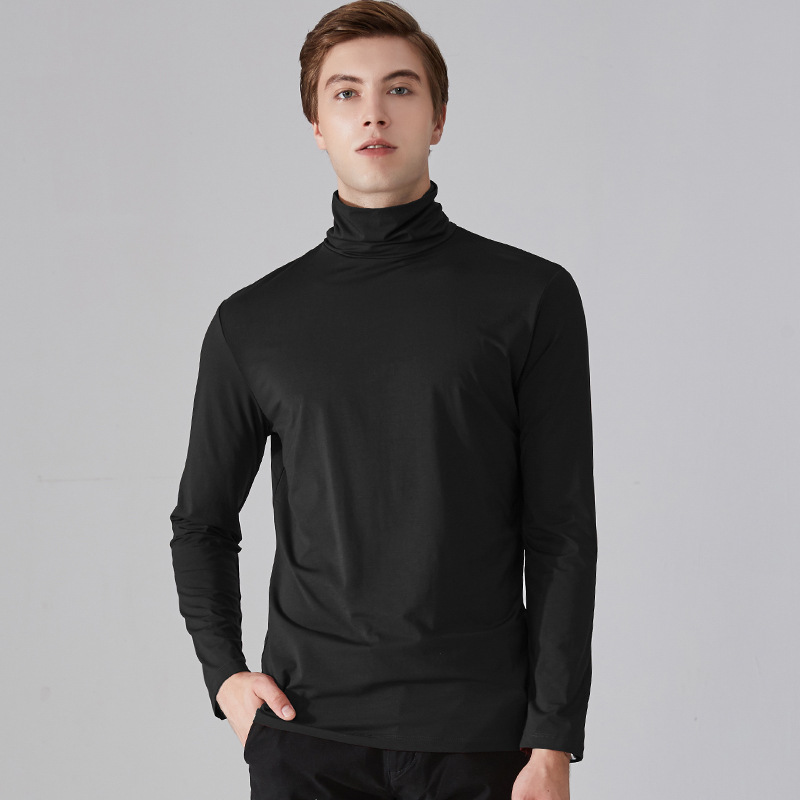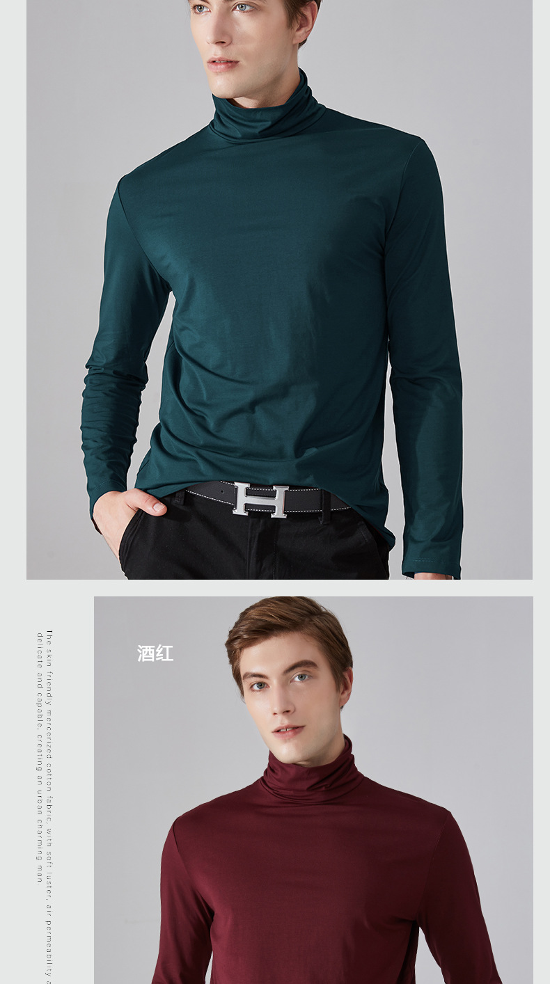 가을과 겨울 남성용 하이 칼라 따뜻한 긴팔 티셔츠 젊은 중년 모달 슬림핏 탑 따뜻한 패셔너블베이스 가을 옷