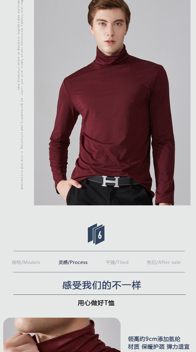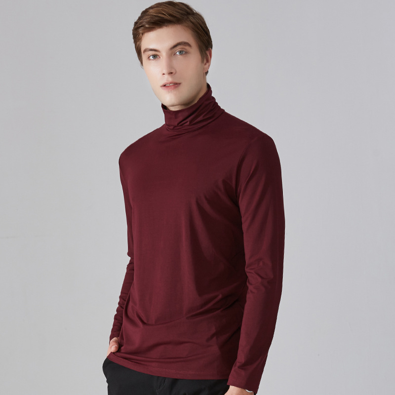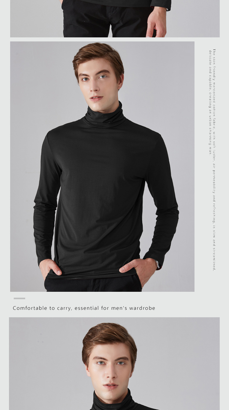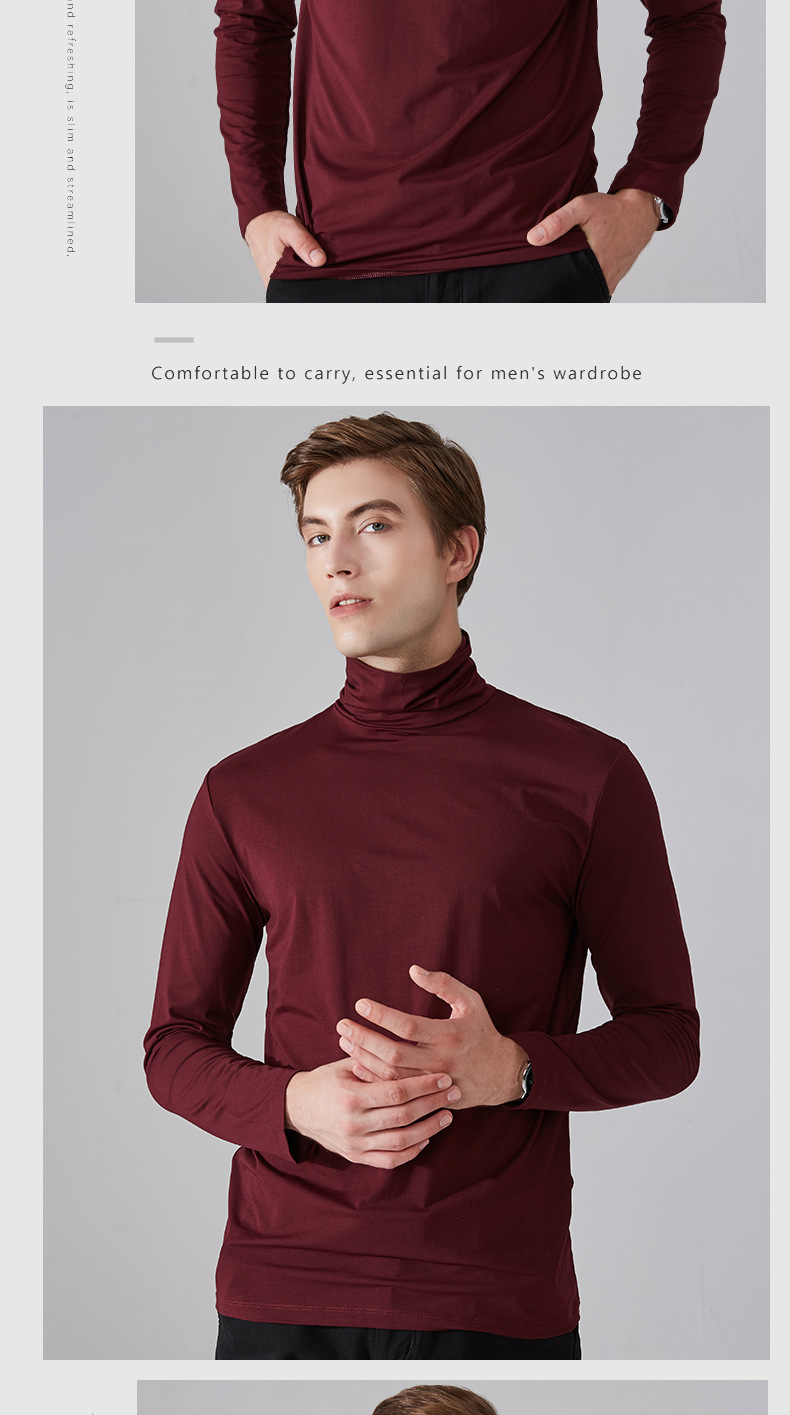가을과 겨울 남성용 하이 칼라 따뜻한 긴팔 티셔츠 젊은 중년 모달 슬림핏 탑 따뜻한 패셔너블베이스 가을 옷