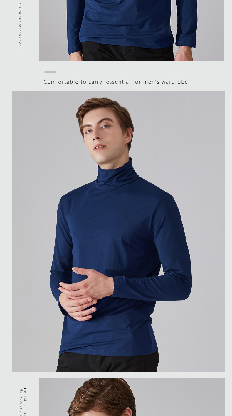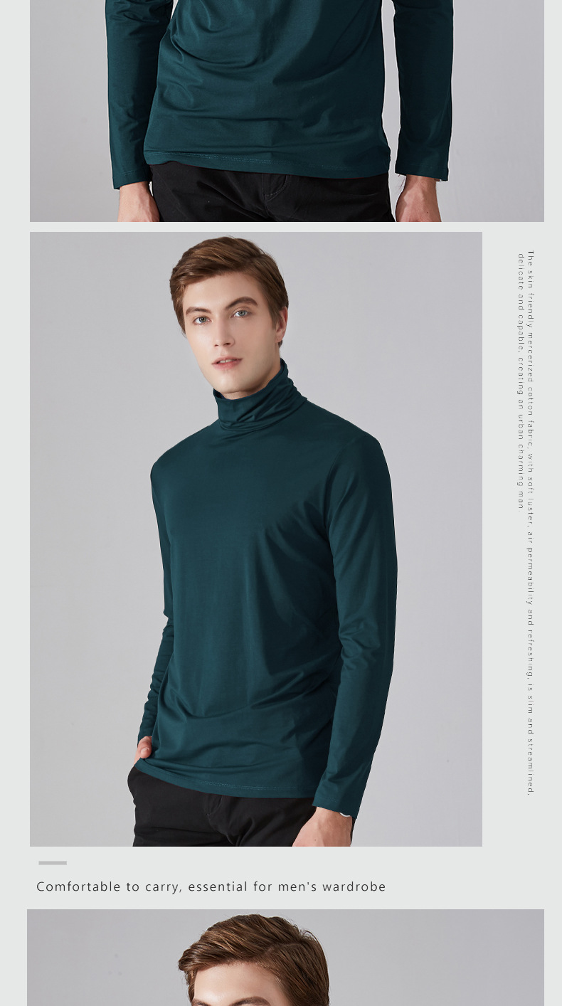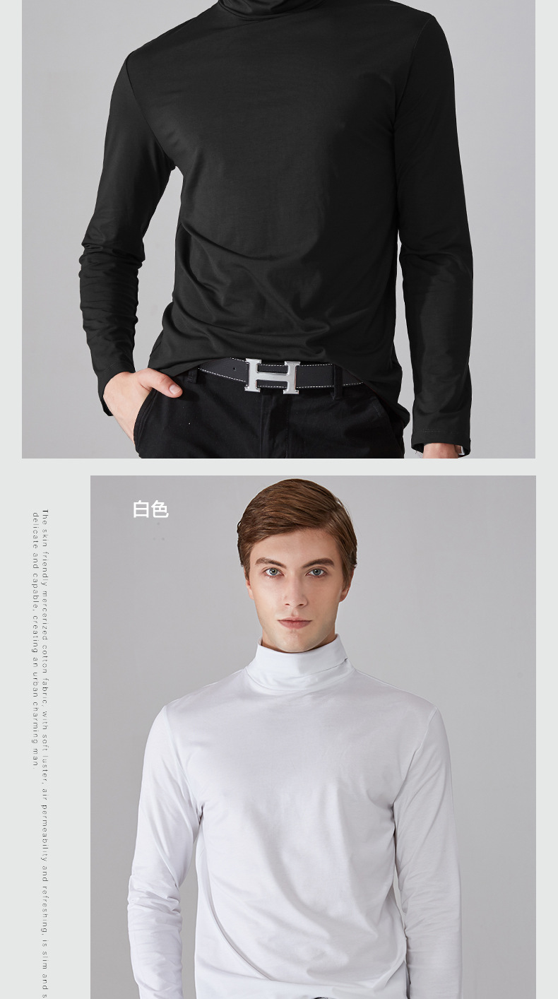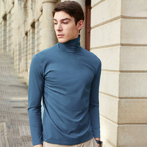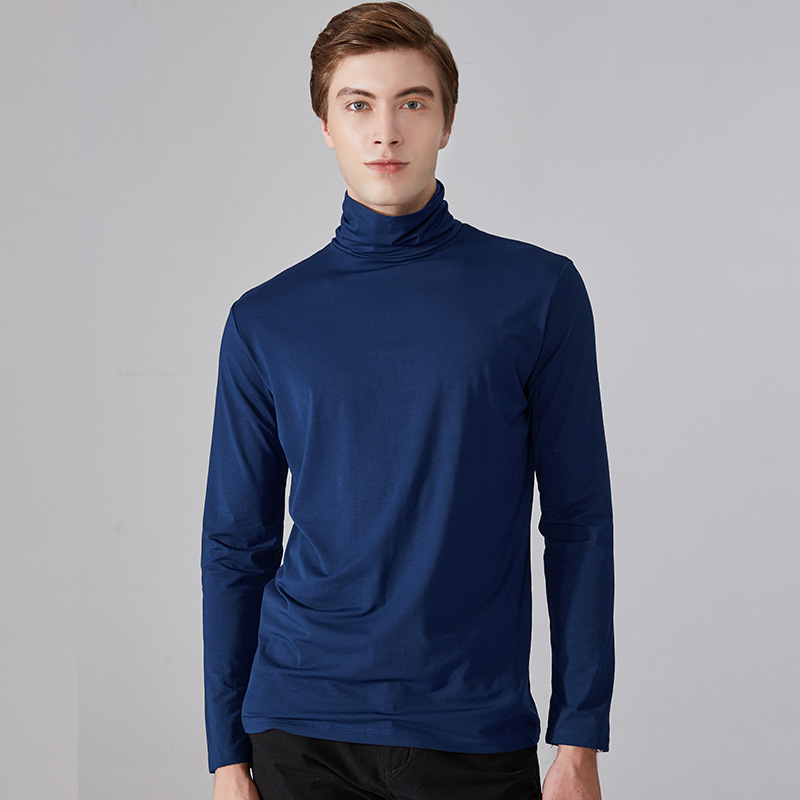 가을과 겨울 남성용 하이 칼라 따뜻한 긴팔 티셔츠 젊은 중년 모달 슬림핏 탑 따뜻한 패셔너블베이스 가을 옷