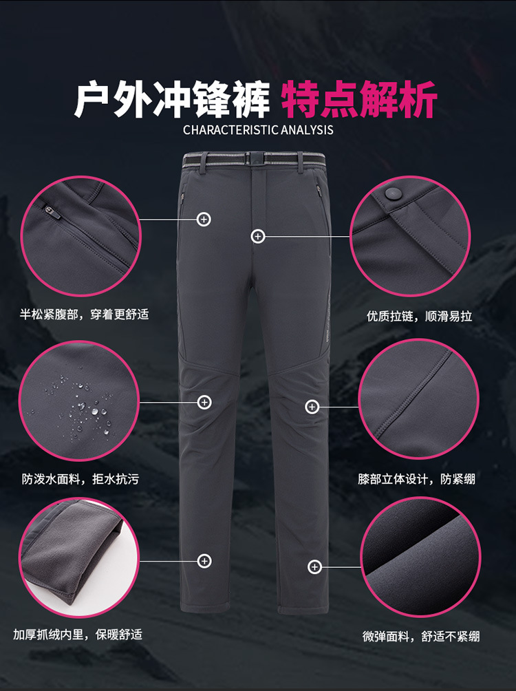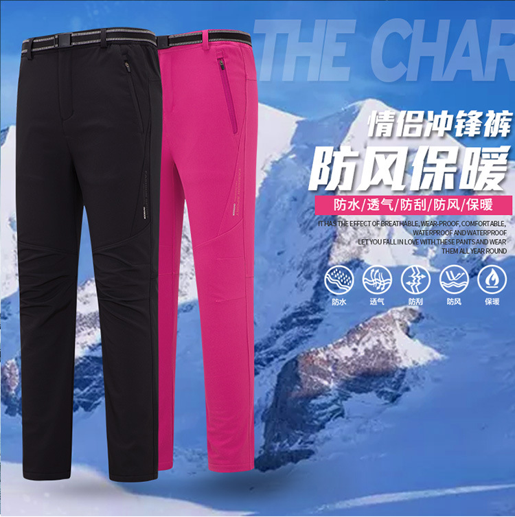 스포츠용 보온 기능성 플리스 안감 두꺼운 방풍 통기성 내마모성 소프트쉘 팬츠, 아웃도어 방한 하이킹 남녀공용 가을 겨울용스토어 가기
