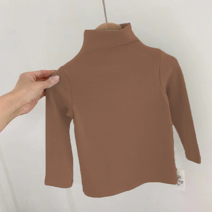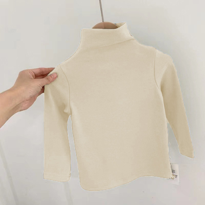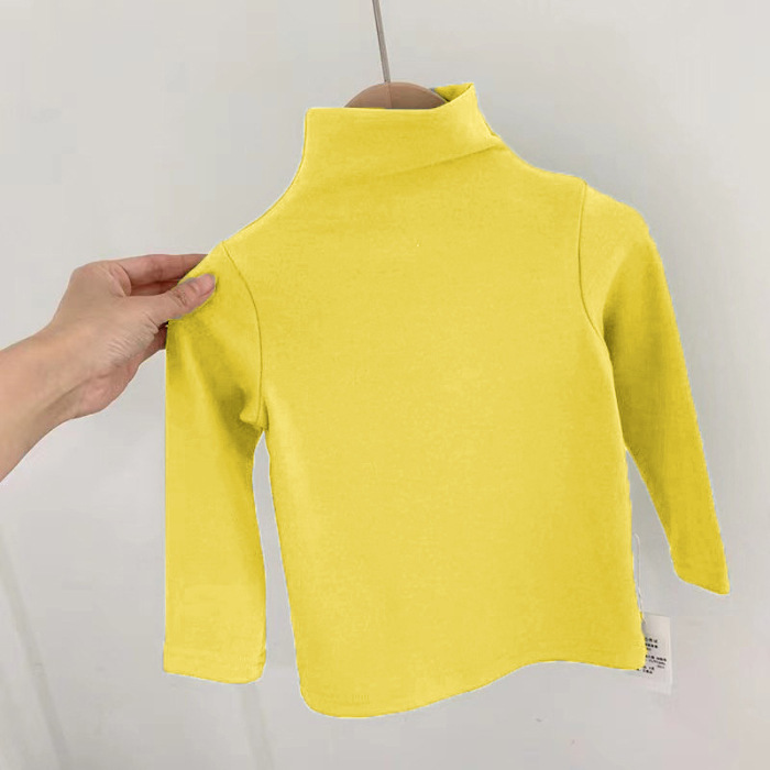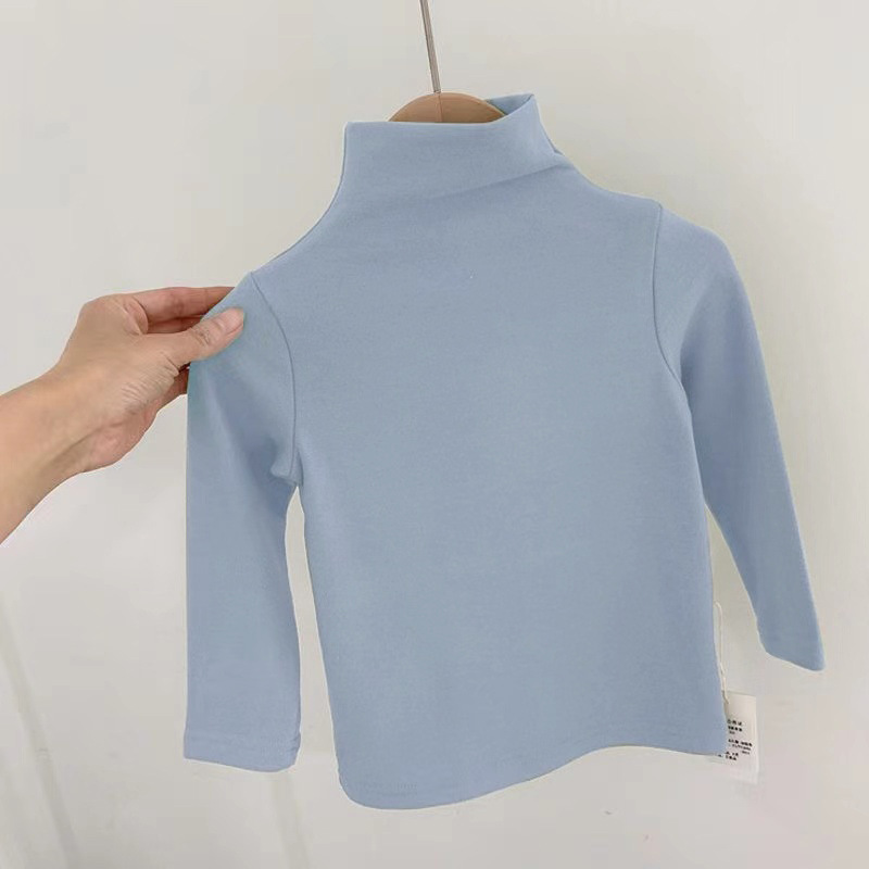 하이넥 데론 남녀공용 아동용 티셔츠 긴팔 베이스레이어 슬림핏 단색 다용도 상의 캔디 컬러 유아용스토어 가기