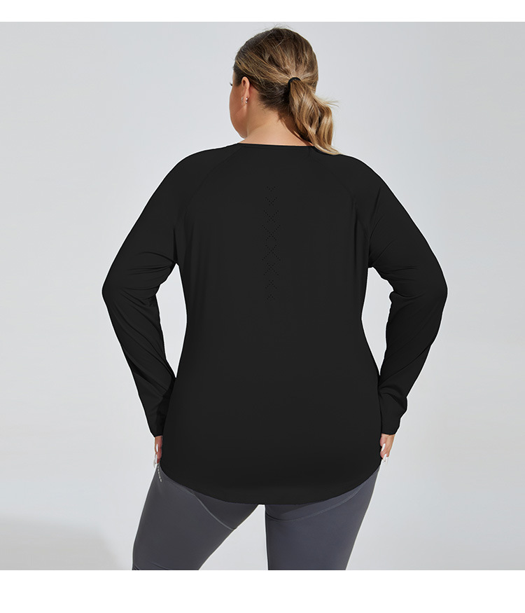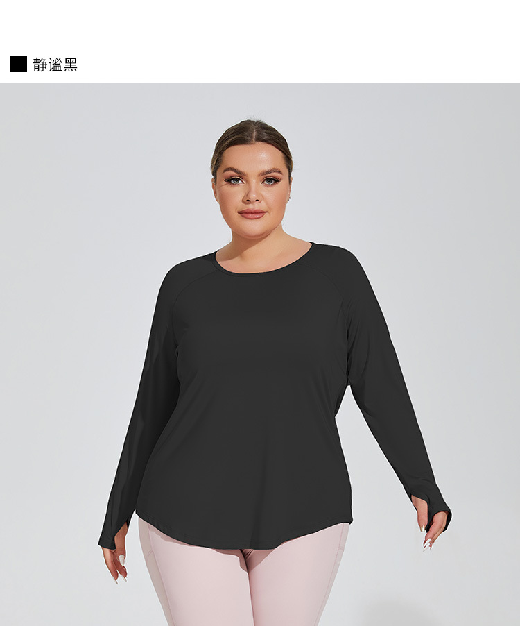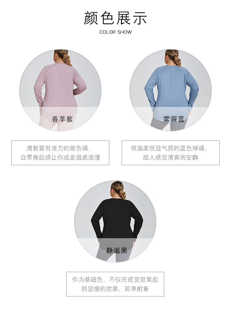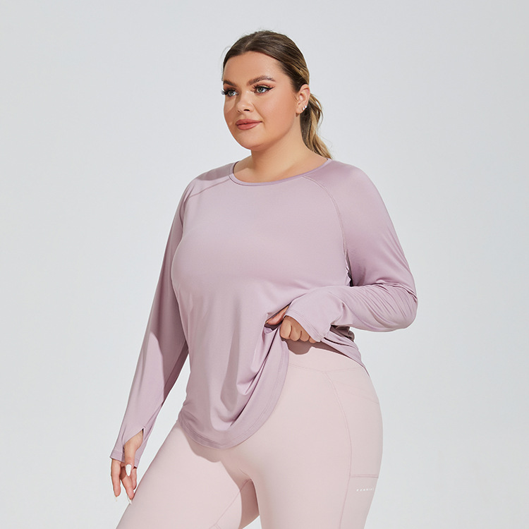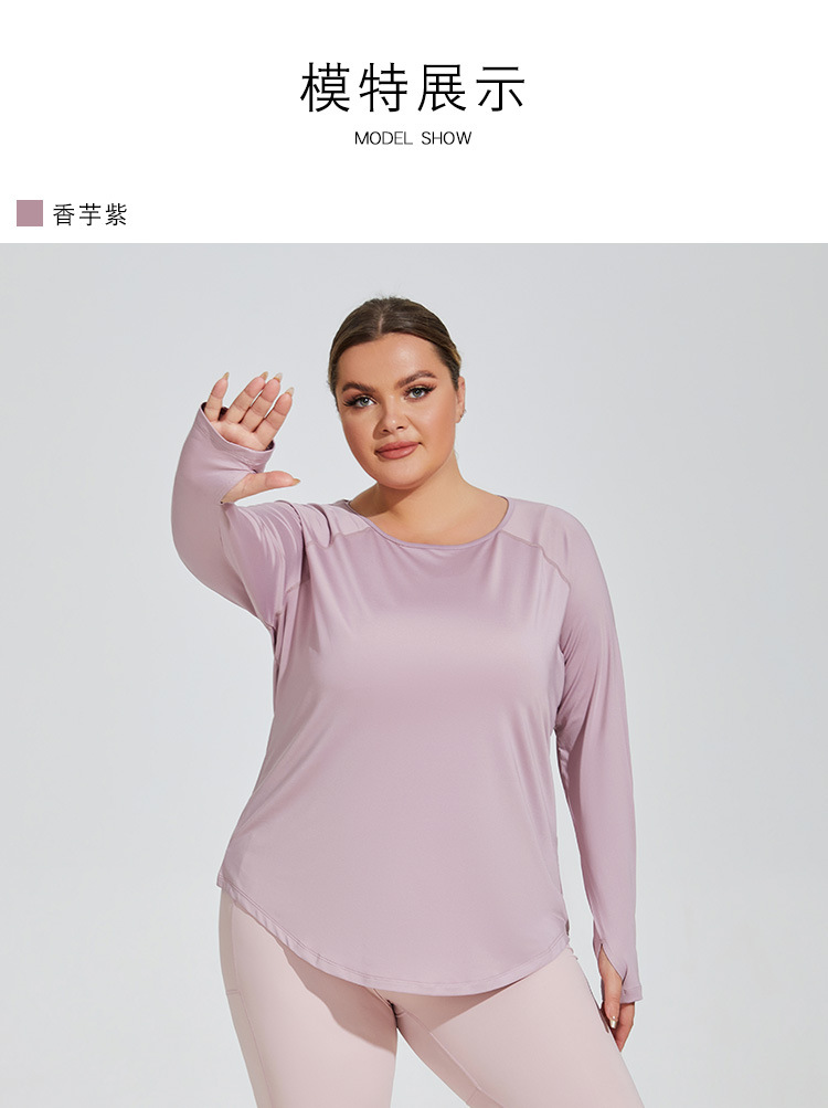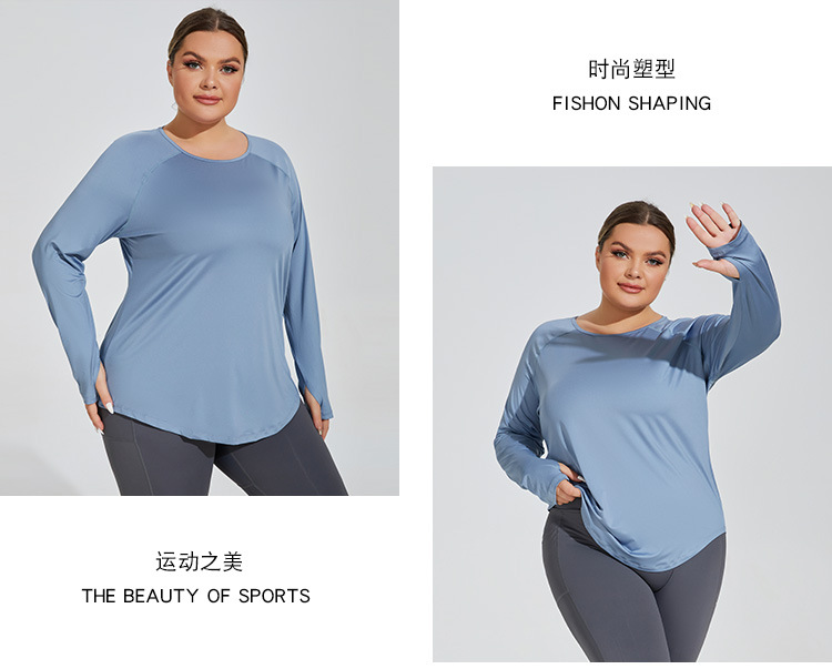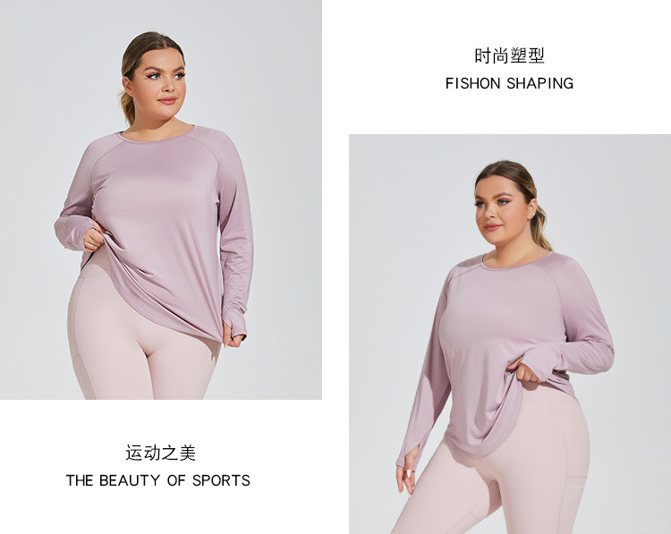 플러스 사이즈 느슨한 엉덩이 커버 슬리밍 요가 의류 메쉬 아름다운 다시 통기성 긴 소매 실행 피트니스 탑 스포츠웨어 여성