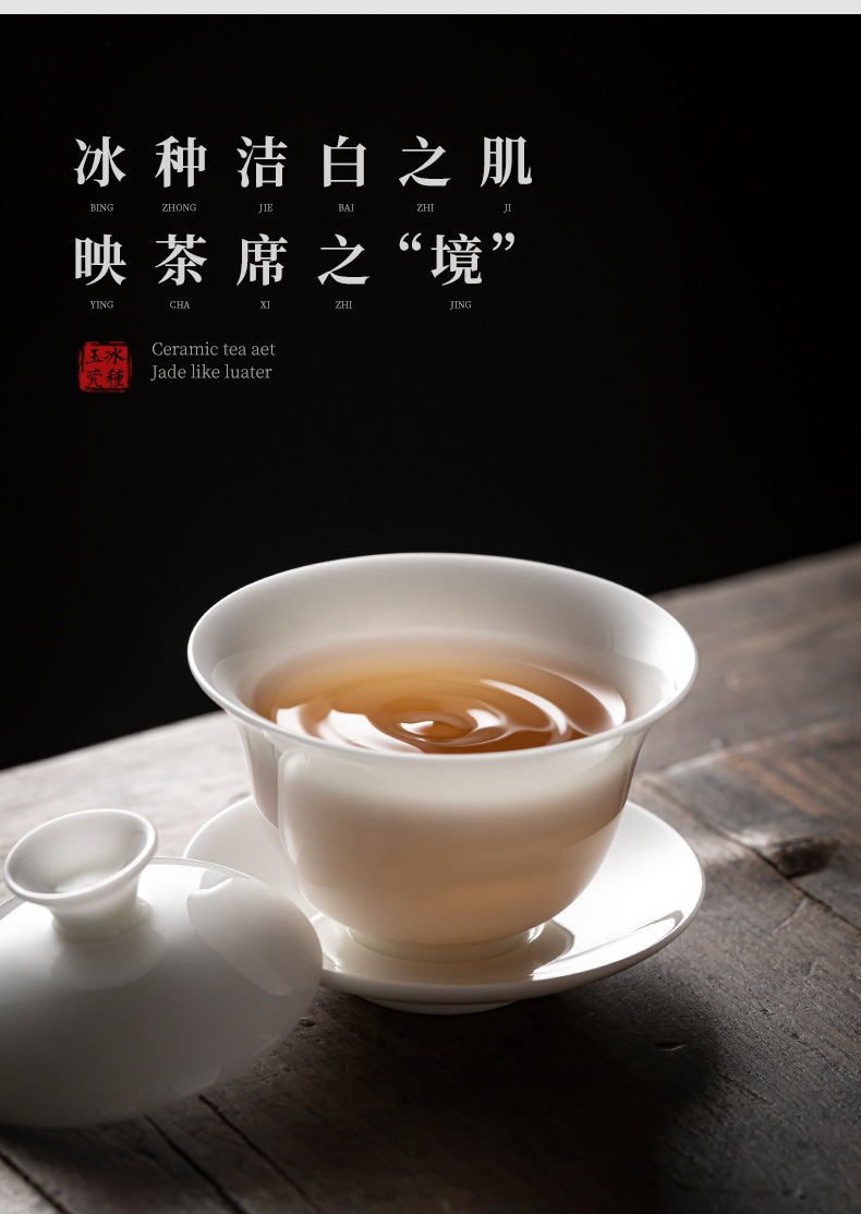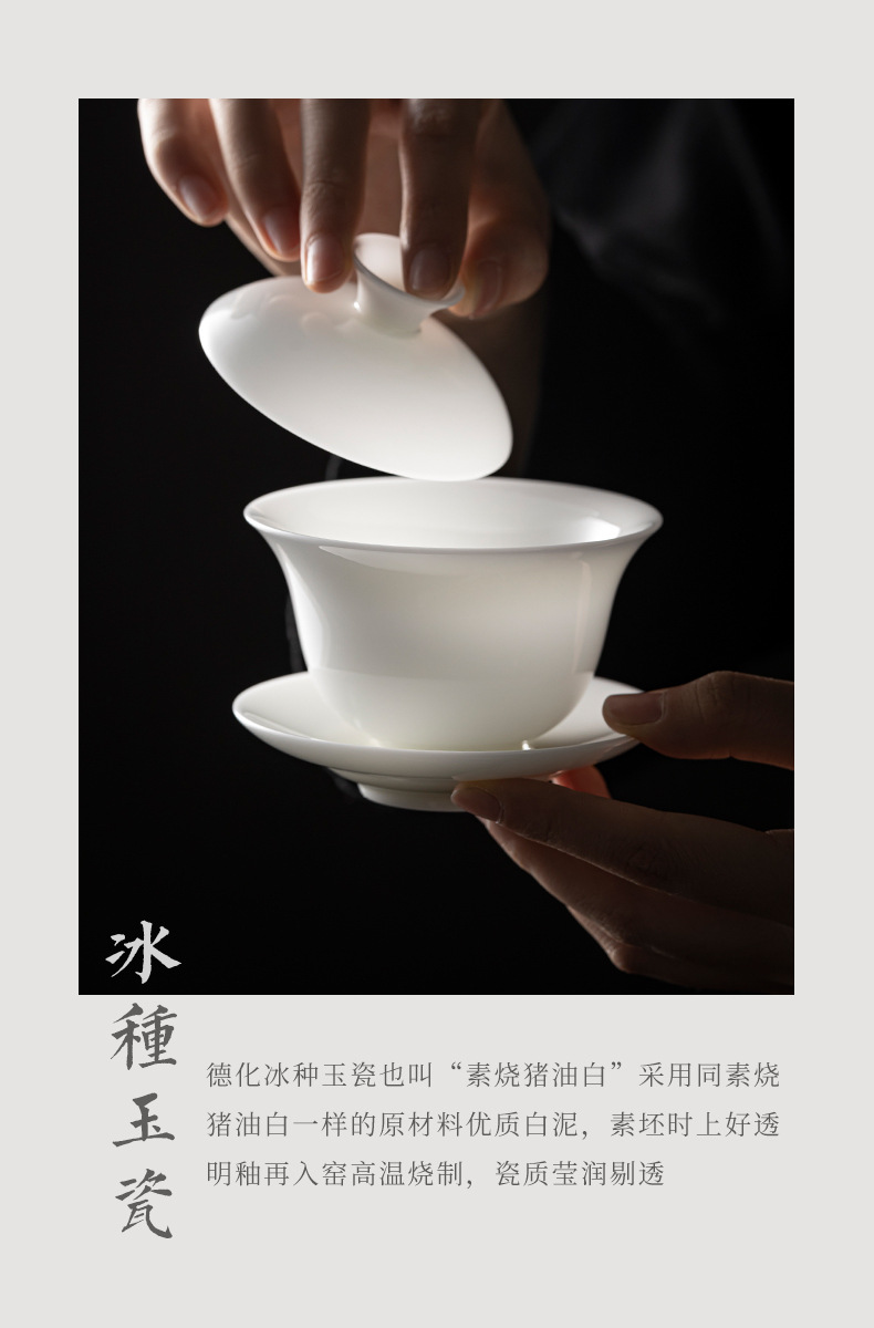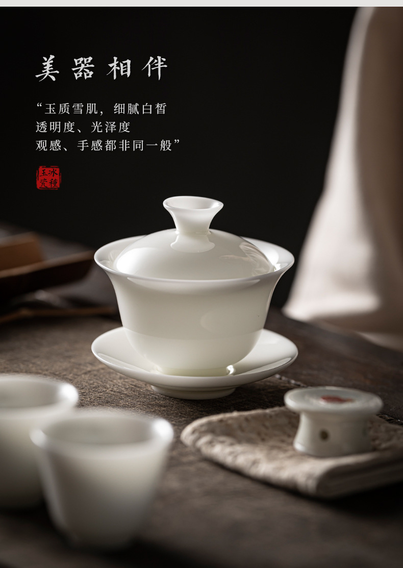 Suet 옥 빙씨 옥 도자기 커버 그릇 데후아 화이트 도자기 산카이 커버 그릇 세라믹 쿵푸 차 세트 찻잔 110ml 찻그릇