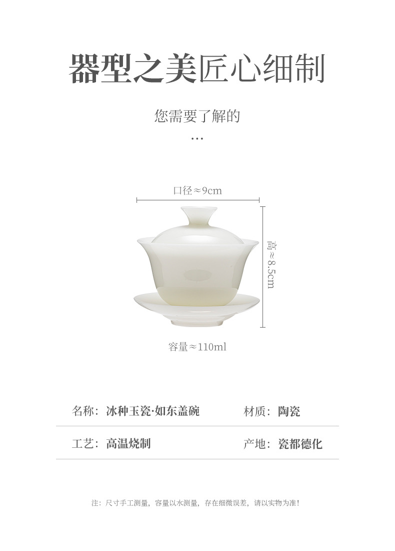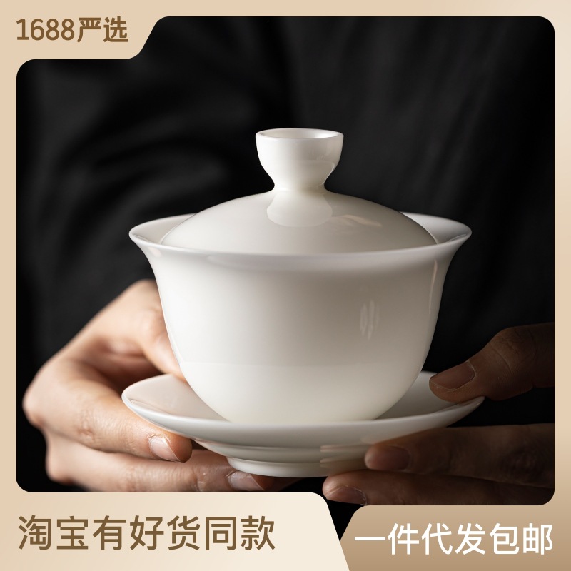 Suet 옥 빙씨 옥 도자기 커버 그릇 데후아 화이트 도자기 산카이 커버 그릇 세라믹 쿵푸 차 세트 찻잔 110ml 찻그릇스토어 가기