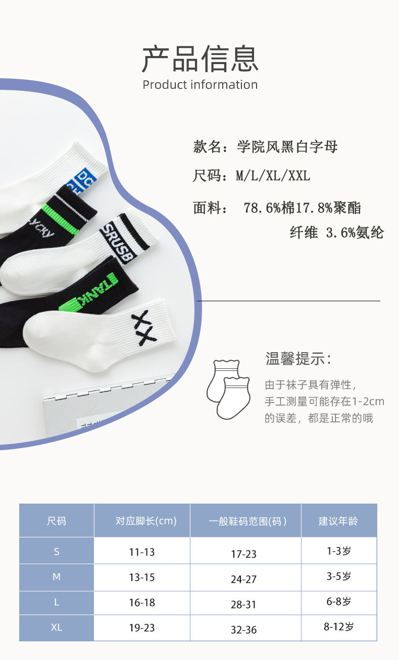 어린이 양말 봄과 가을 중간 튜브 양말 소년 중형 및 대형 어린이 소년 스포츠 조수 양말 청소년 학생면 양말 가을과 겨울