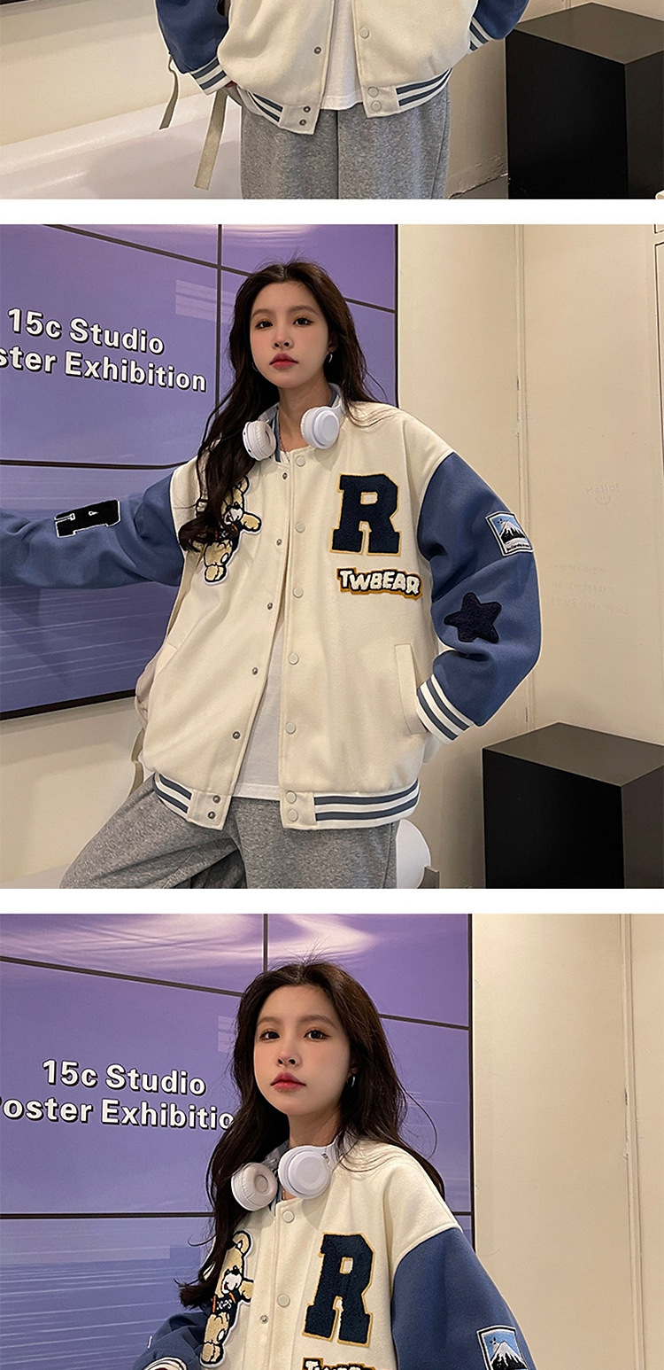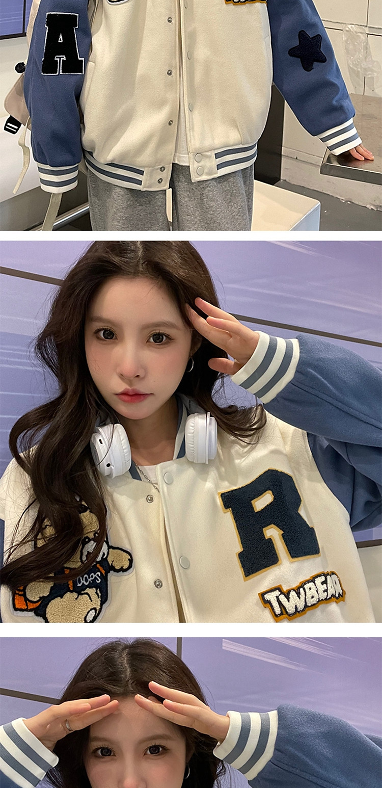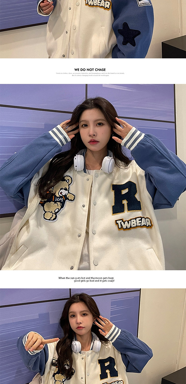 여성을위한 미국 야구 유니폼 재킷 가을, 겨울 2025 새로운 한국어 디자인 재킷 스웨트 셔츠 학생 루즈 탑 유행스토어 가기