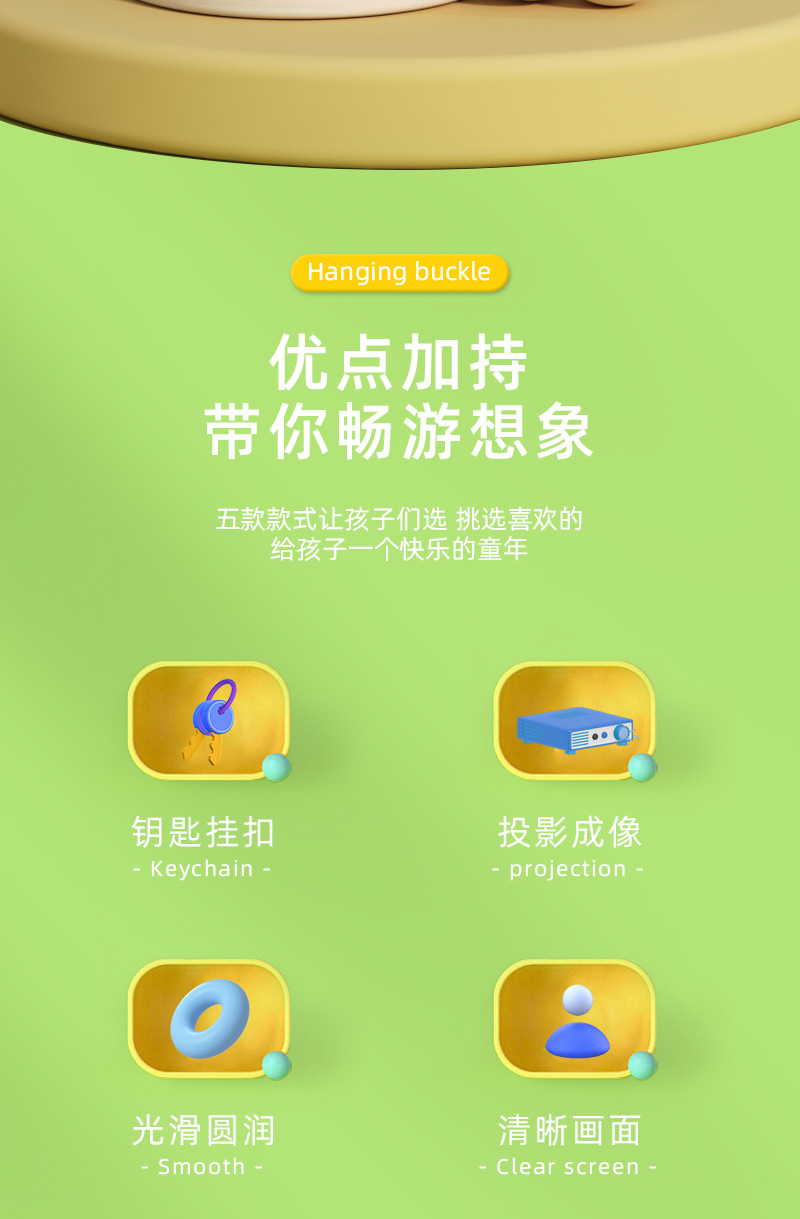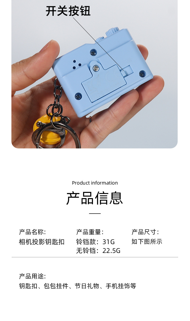 카메라 프로젝터 키 체인 발광 미니 귀여운 종 동물 패턴 어린이 학생 가방 펜던트 장난감