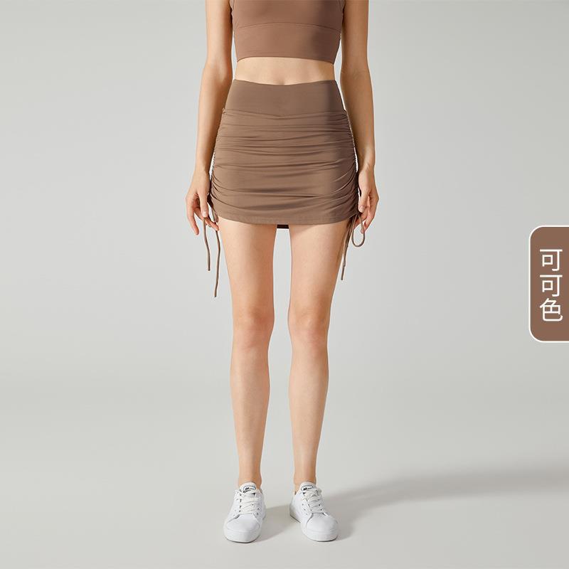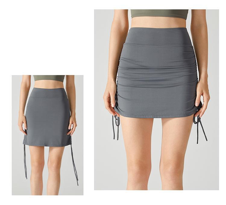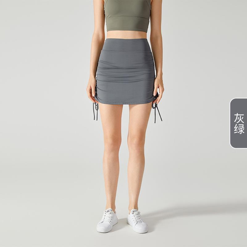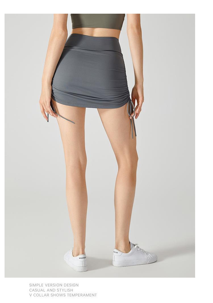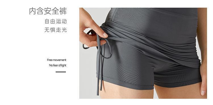 여성용 투피스 피트니스 스커트 팬츠, 러닝, 요가, 하이웨이스트, 힙업, 조임끈, 타이트한 스포츠 반바지, 반팔