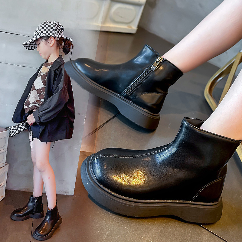 남아 부츠 블랙 부드러운 밑창 여아 마틴 부츠 영국 스타일 로우 탑 아동 가죽 부츠 봄과 가을 신상품 Zhongda 어린이 신발스토어 가기