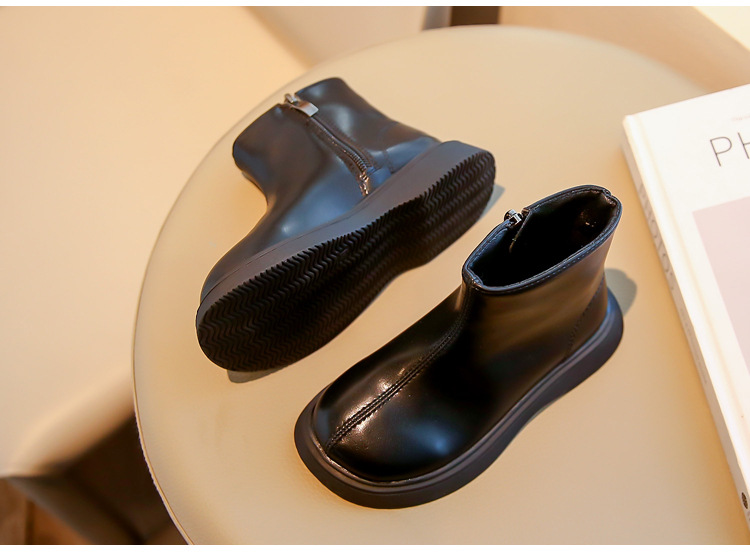 남아 부츠 블랙 부드러운 밑창 여아 마틴 부츠 영국 스타일 로우 탑 아동 가죽 부츠 봄과 가을 신상품 Zhongda 어린이 신발