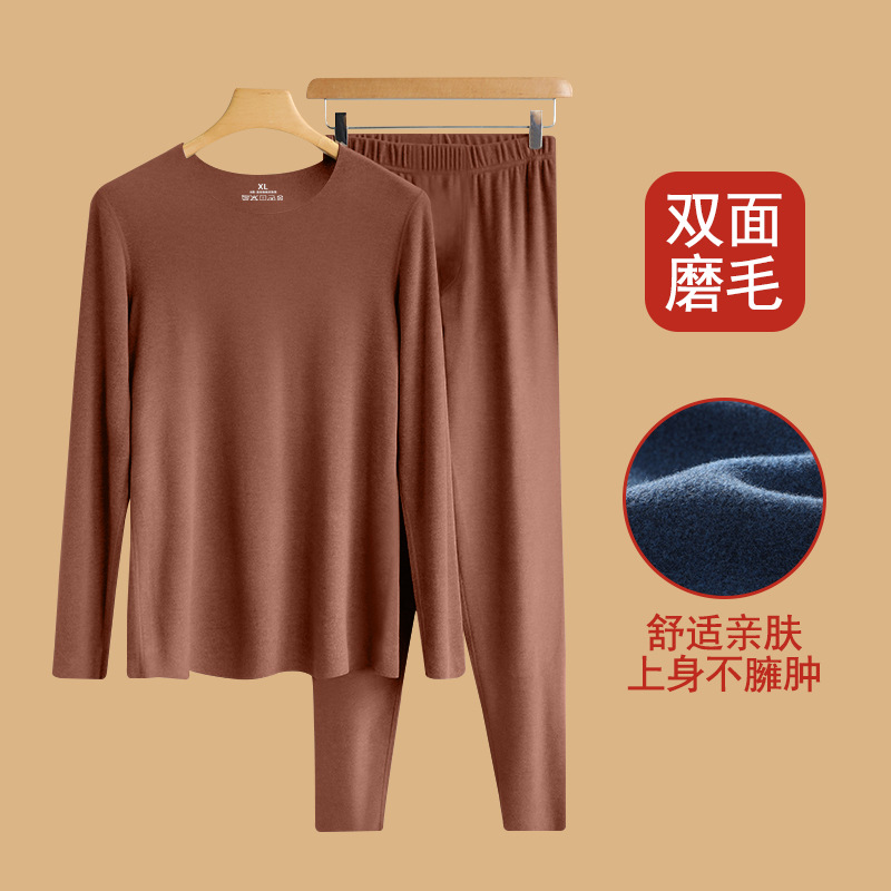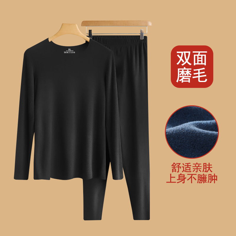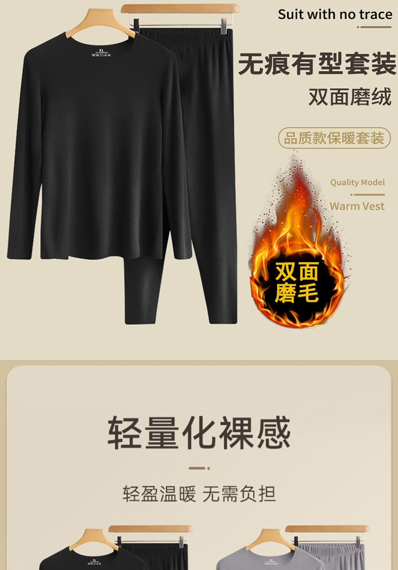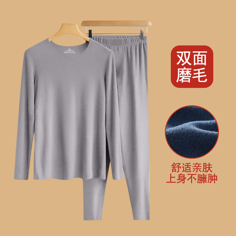 가을과 겨울 따뜻한 세트 남성복 매끄러운베이스 셔츠 기모 따뜻한 한랭 내줄 둥근 목 긴팔 가을 옷스토어 가기