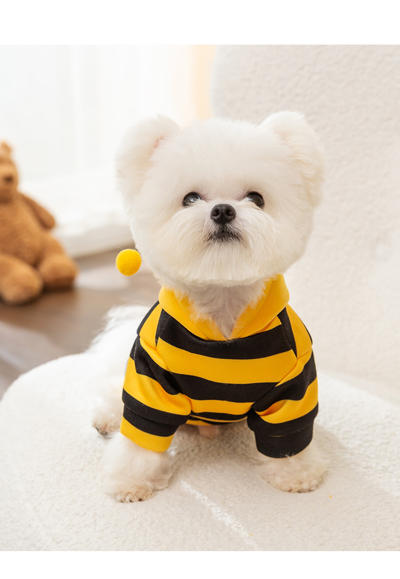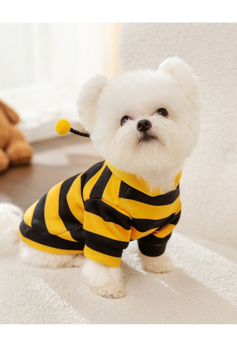 가을과 겨울 귀여운 꿀벌 견인 개 운동복 고양이 두 다리 변형 애완 동물 테디 따뜻한 옷