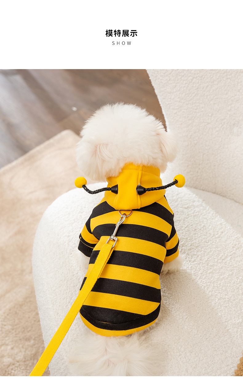 가을과 겨울 귀여운 꿀벌 견인 개 운동복 고양이 두 다리 변형 애완 동물 테디 따뜻한 옷스토어 가기