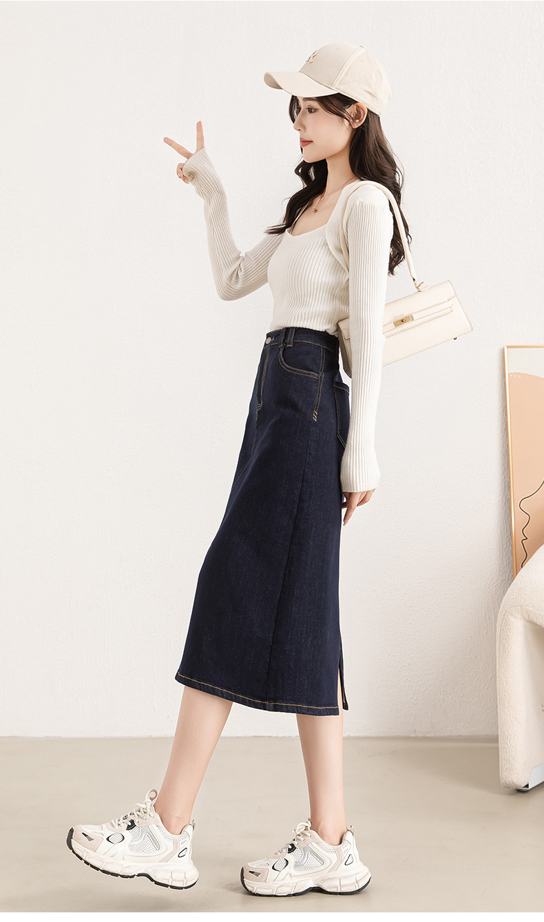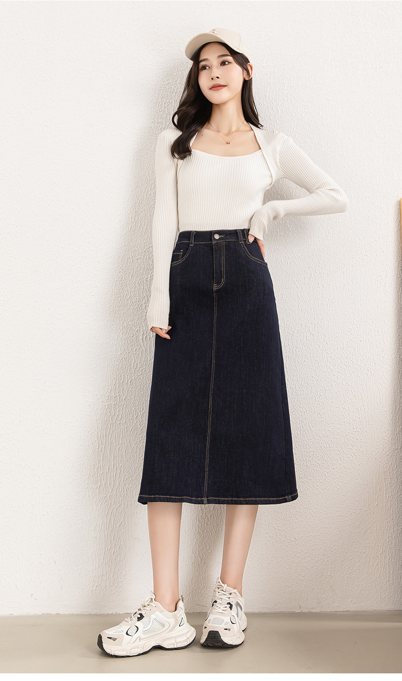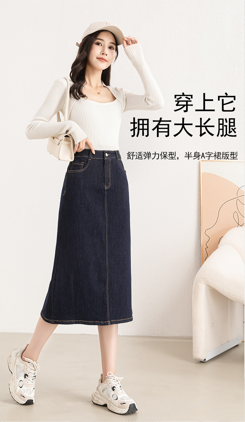 블랙 테크놀로지로 쉽게 색이 바래지 않는 여성용 빅사이즈 데님 스커트 2025년 가을 한국 스타일 7부 A라인 스커트 8029스토어 가기