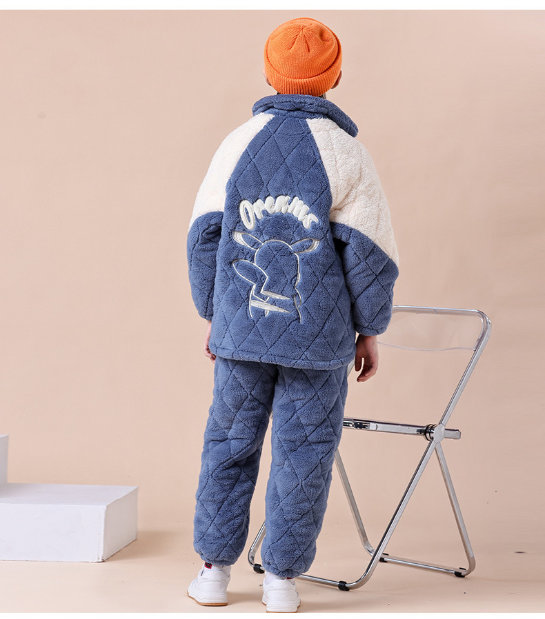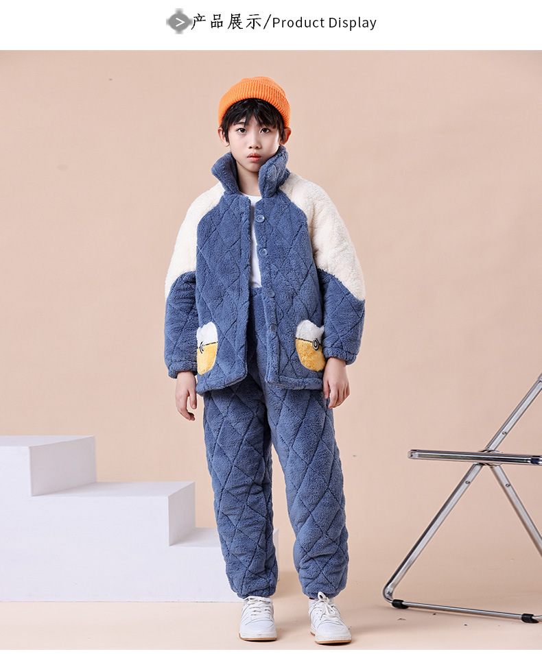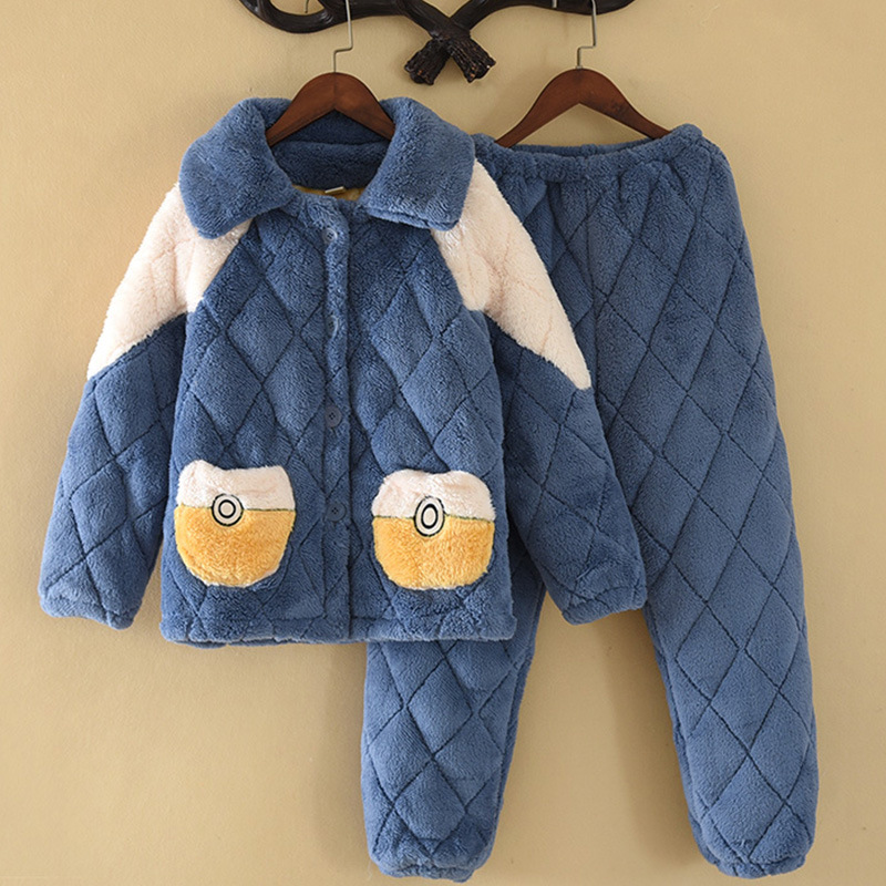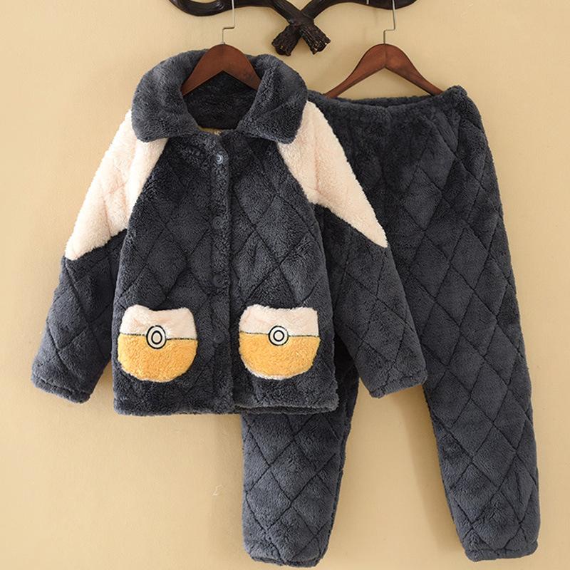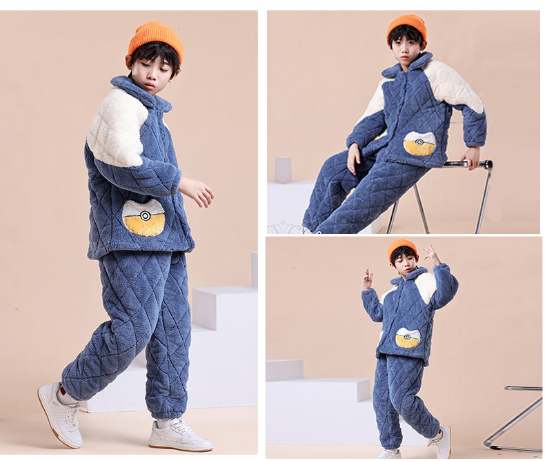 잠옷 겨울 두꺼운 소년의 산호 양털 소년의 큰 소년의 소녀의 3 층 누비 이불 겨울 기모 가정 옷스토어 가기