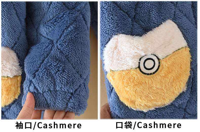 잠옷 겨울 두꺼운 소년의 산호 양털 소년의 큰 소년의 소녀의 3 층 누비 이불 겨울 기모 가정 옷