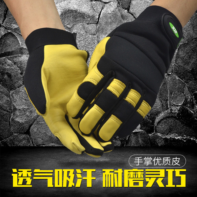 Haitaier 0395 손바닥 전체 양가죽 기계 장갑 자동차 제조 용접기 노동 보호 장갑 구조 작동 장갑
