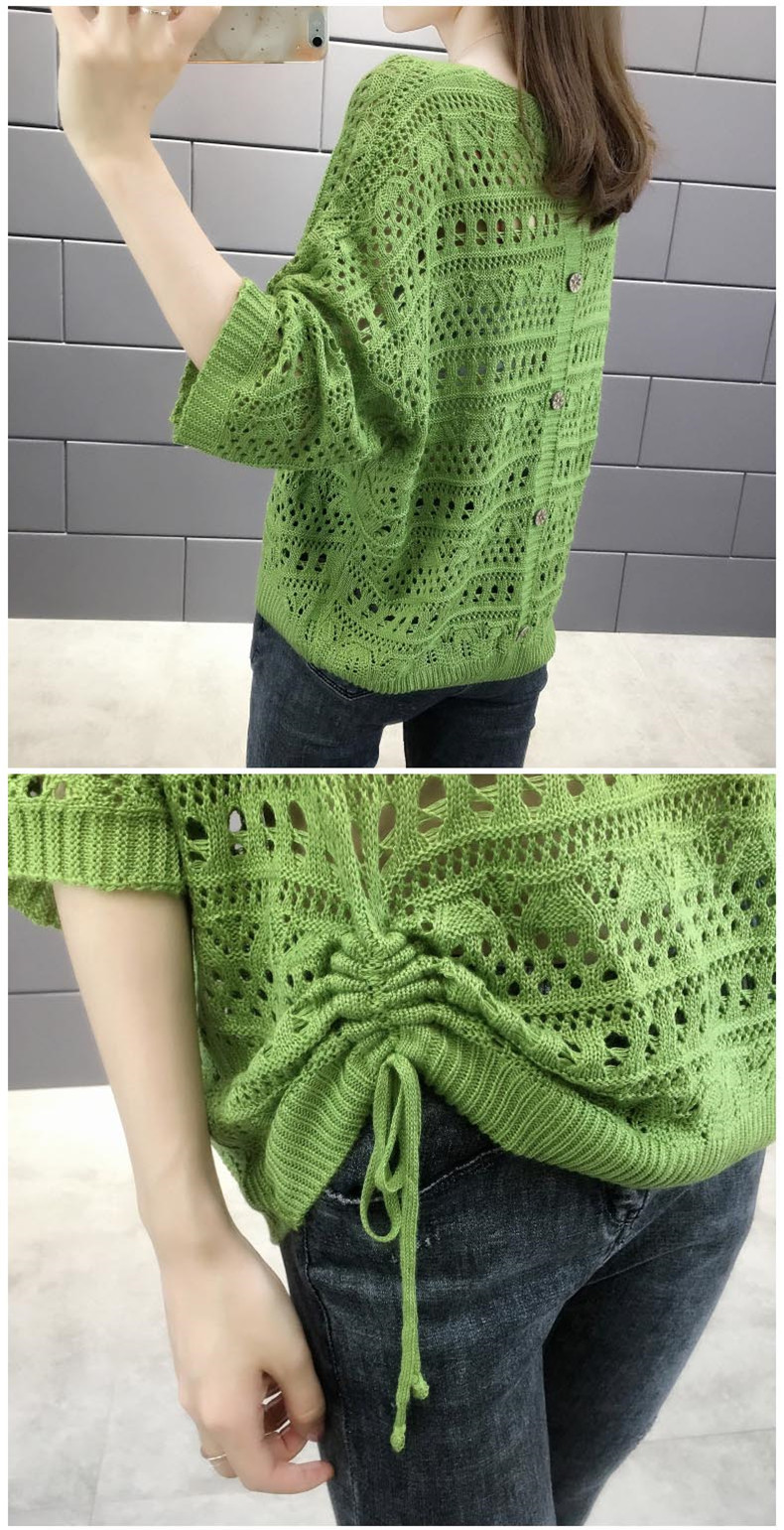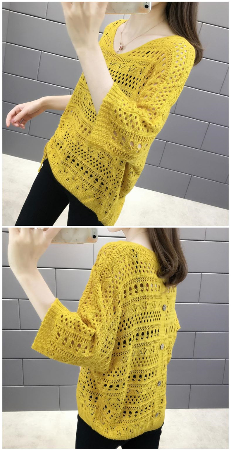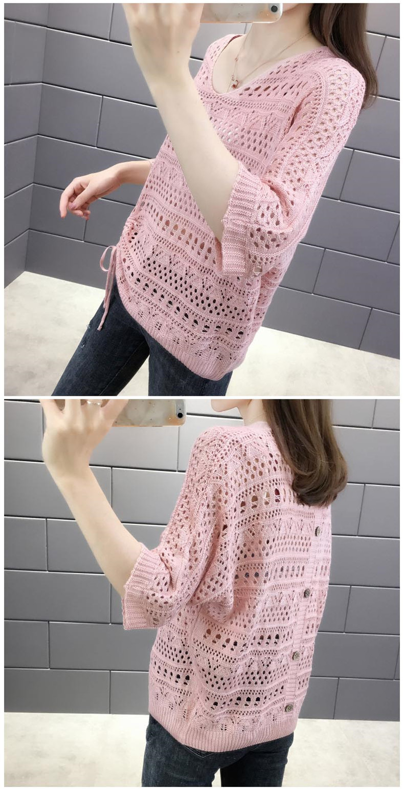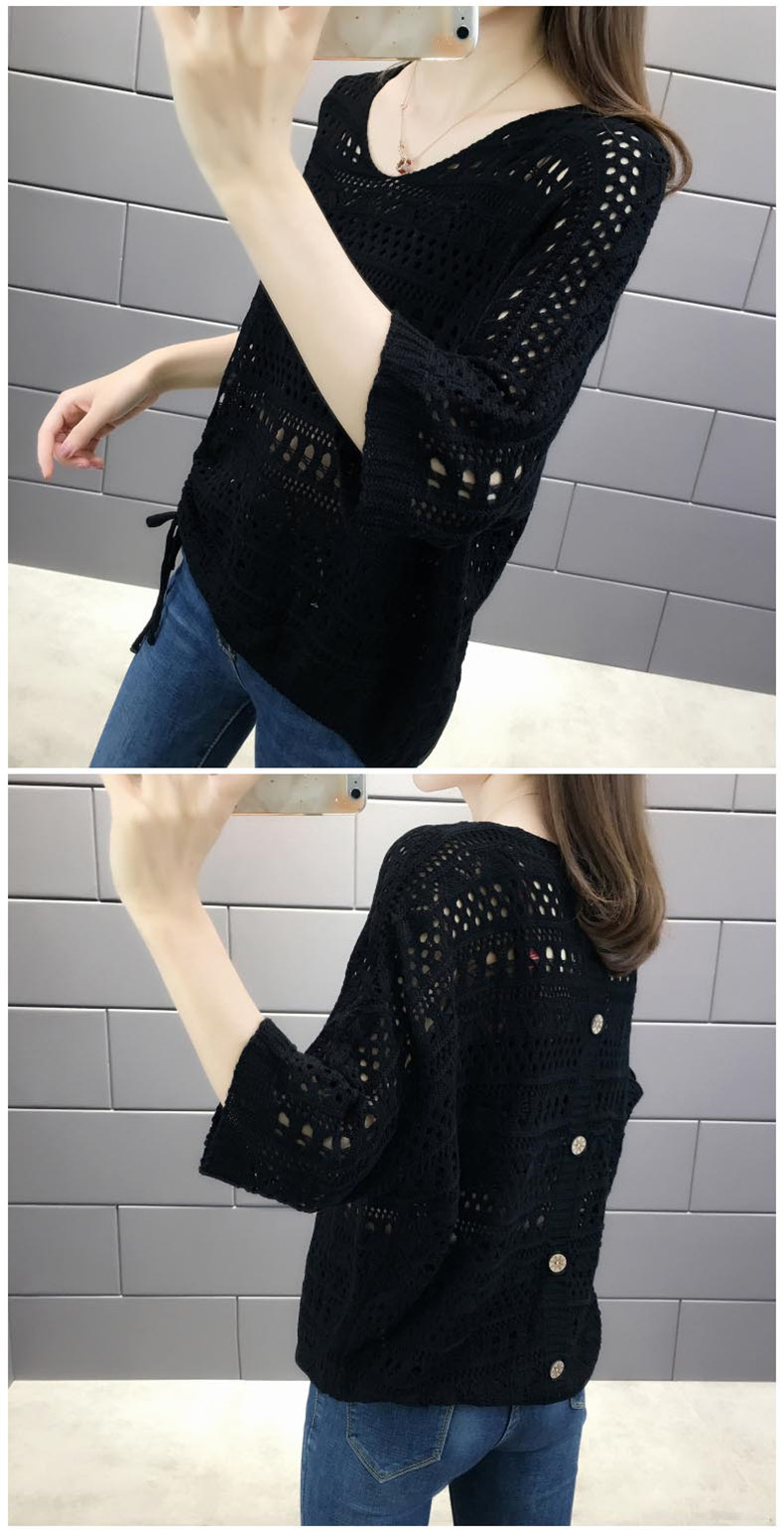중공 V 넥 니트 블라우스 게으른 스타일 여름 2020 새로운 레이스 업 느슨한 드로우 스트링 탑 얇은 그물 셔츠 여성용