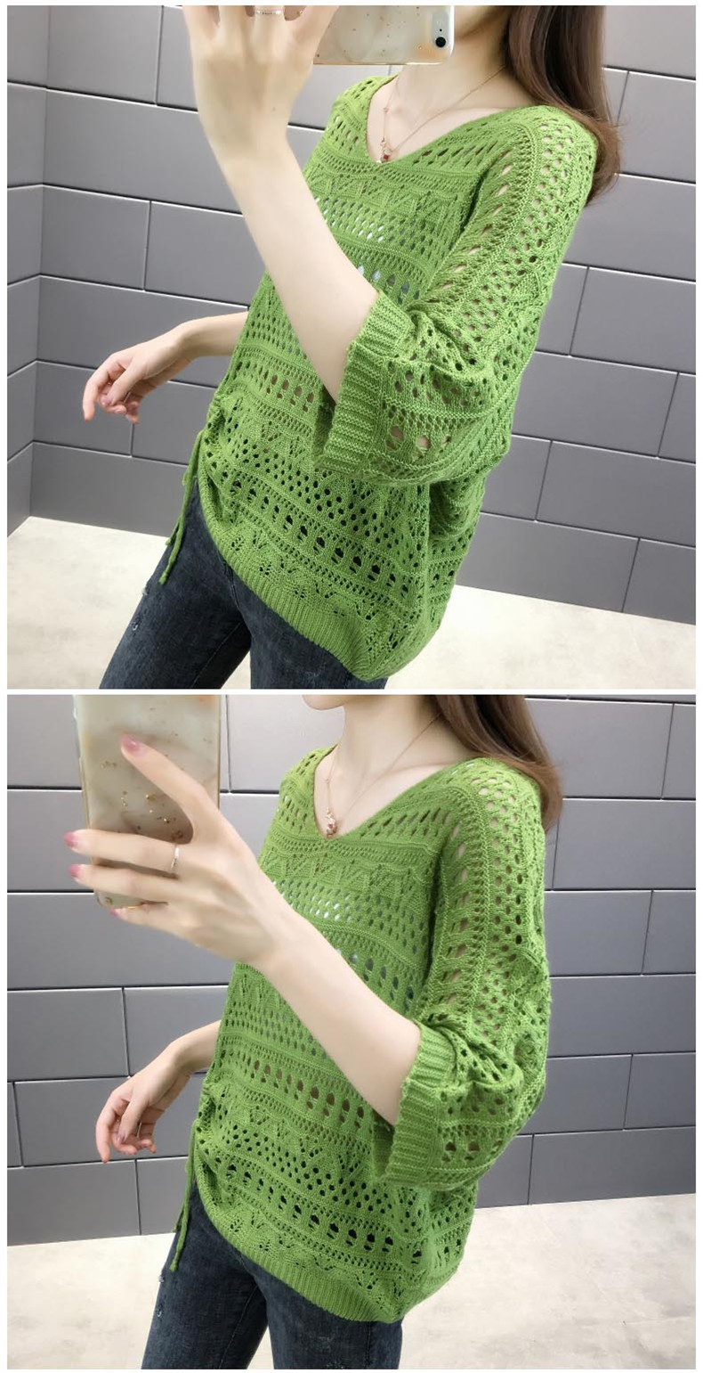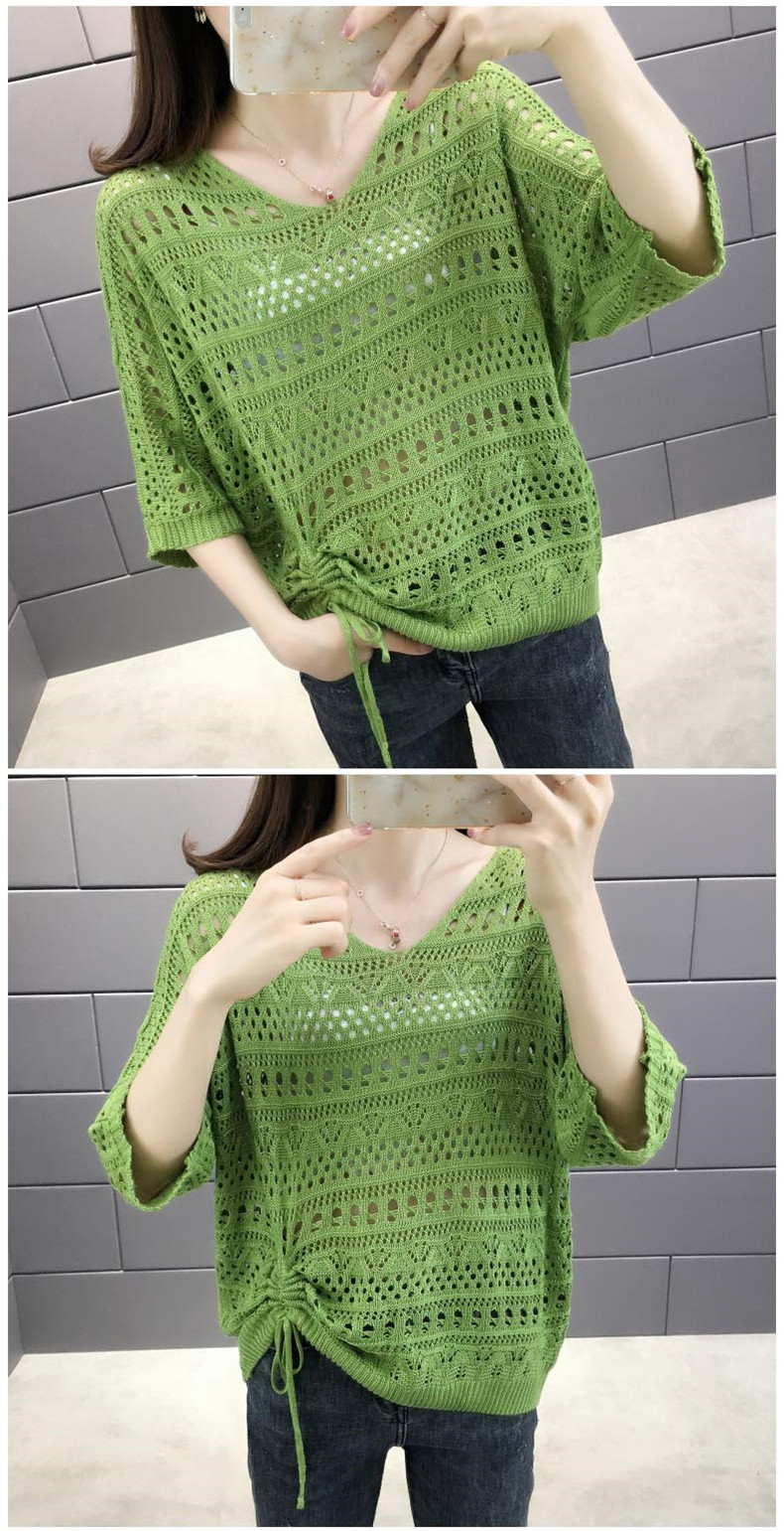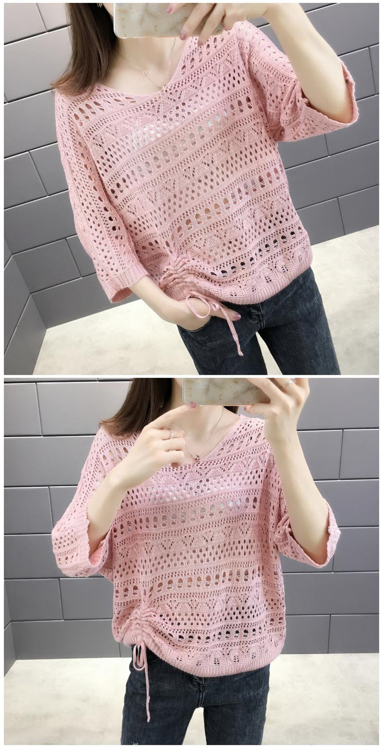중공 V 넥 니트 블라우스 게으른 스타일 여름 2020 새로운 레이스 업 느슨한 드로우 스트링 탑 얇은 그물 셔츠 여성용스토어 가기