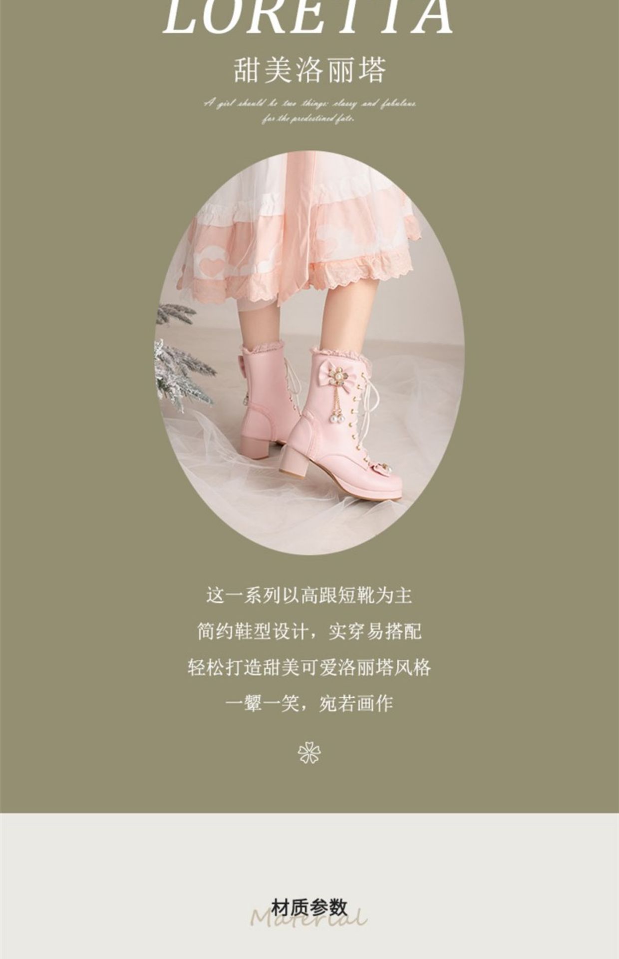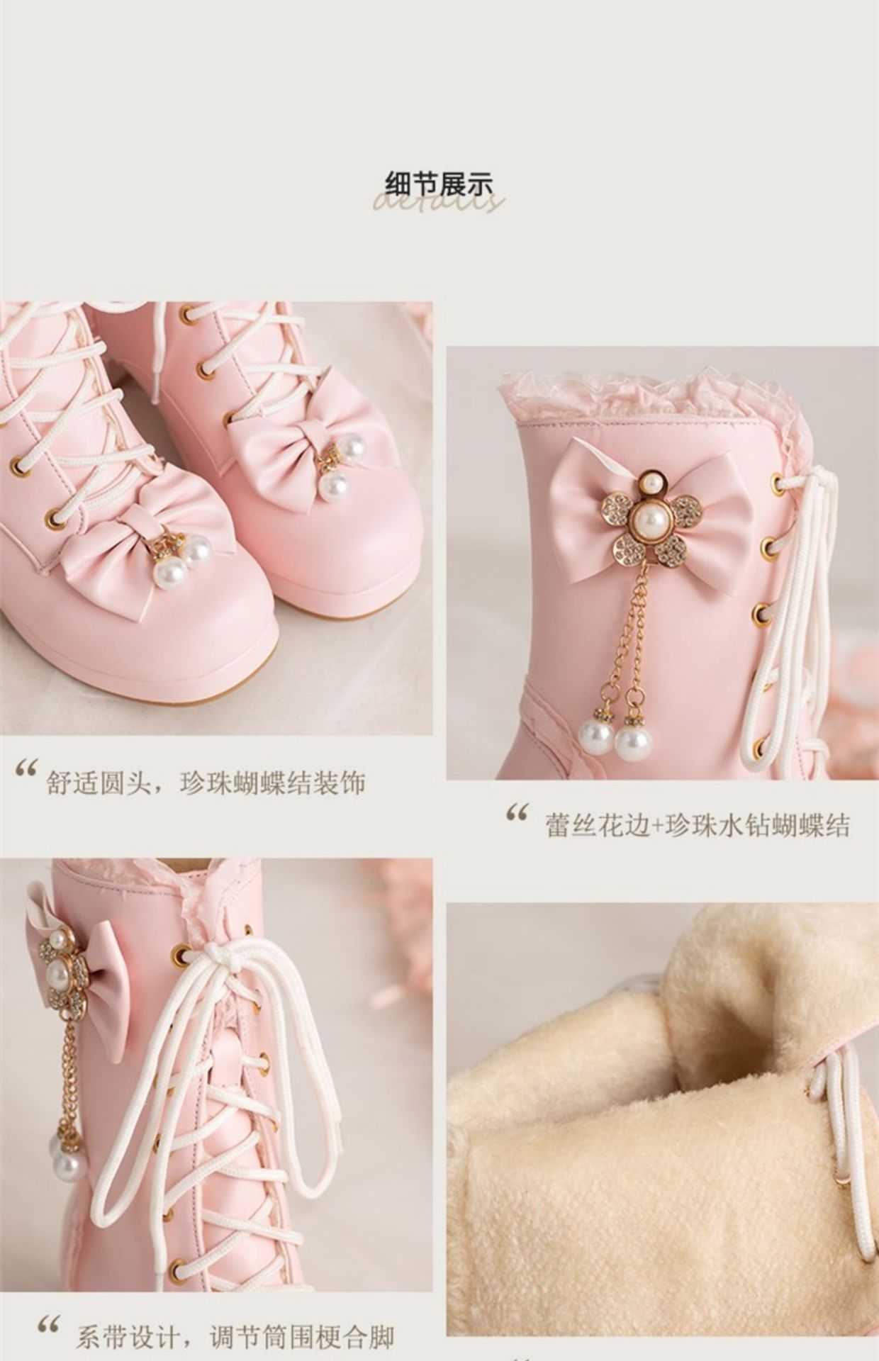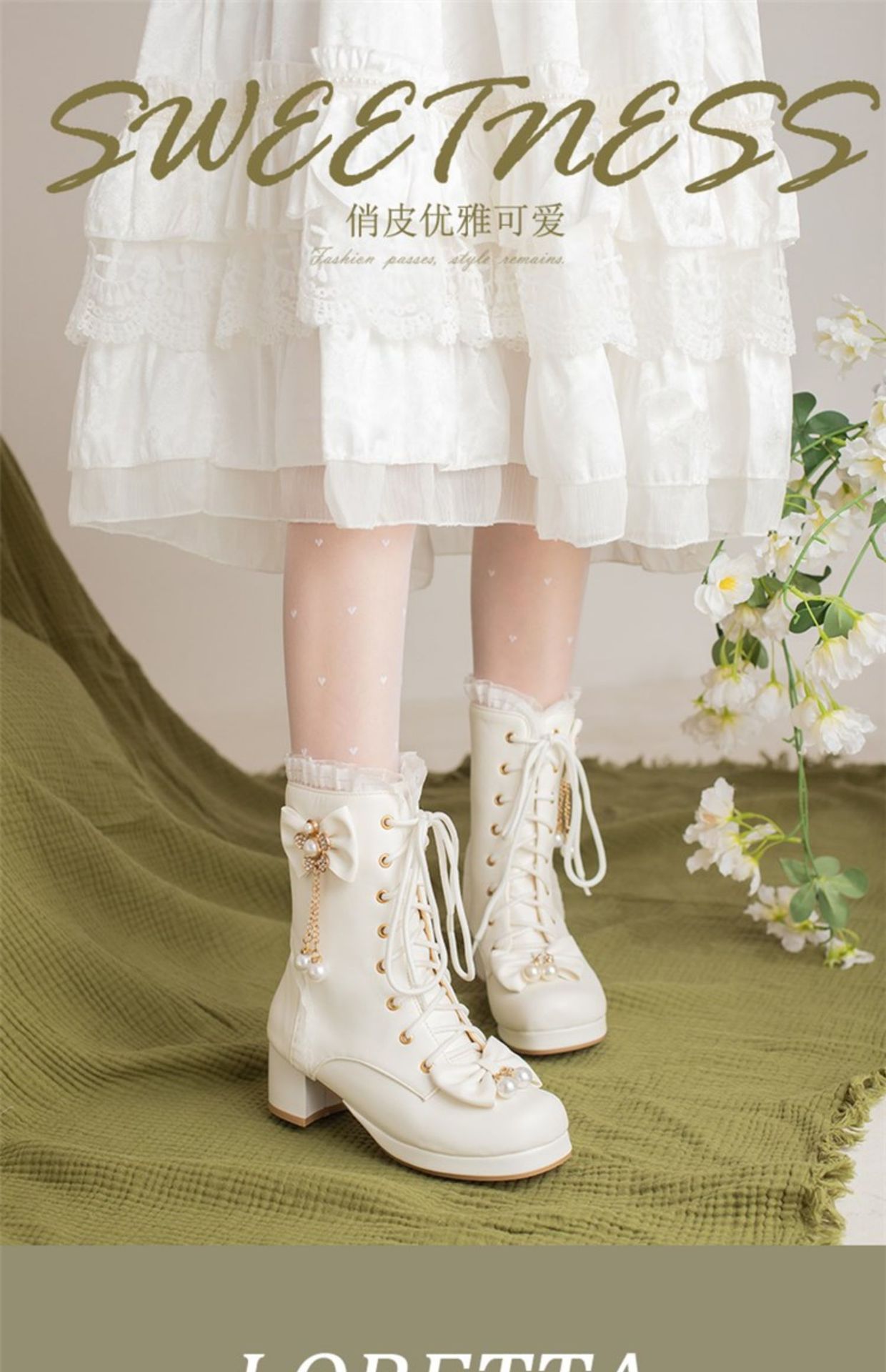 오리지널 로리타 스위트 보우 미드 부츠 여성용 패션 두꺼운 바닥 두꺼운 굽 미드 부츠 플러스 사이즈 레이스 업 마틴 부츠스토어 가기