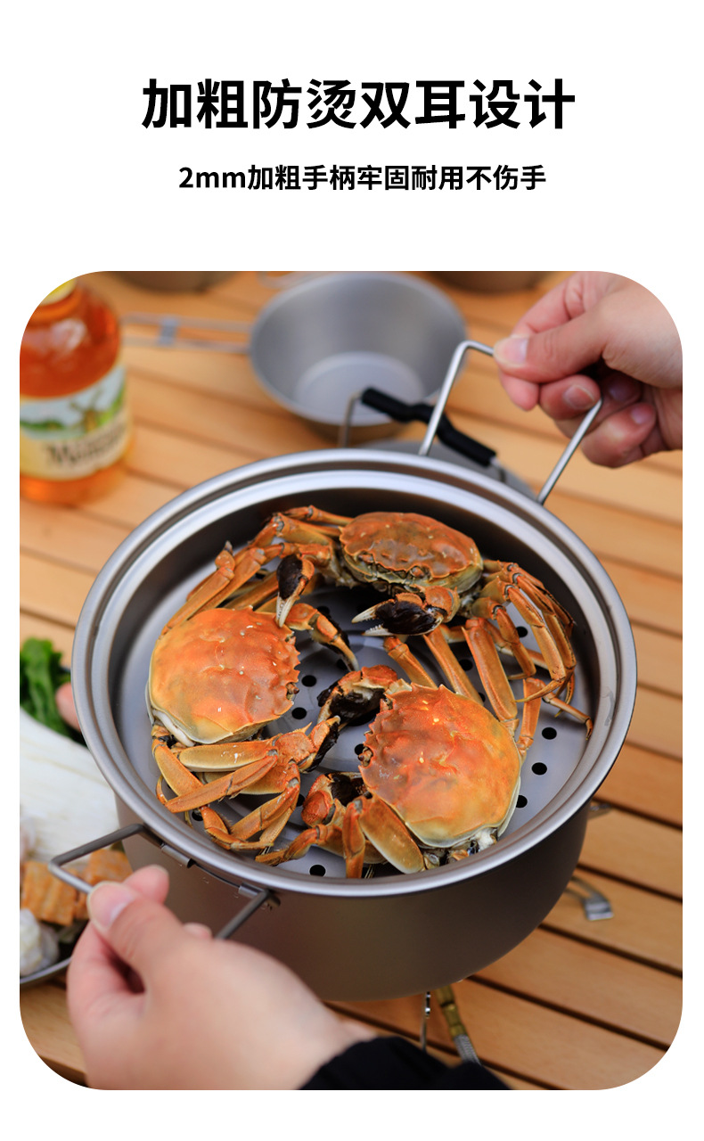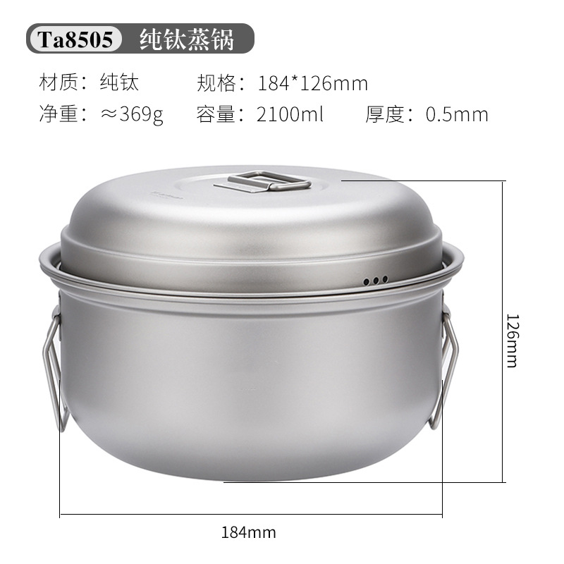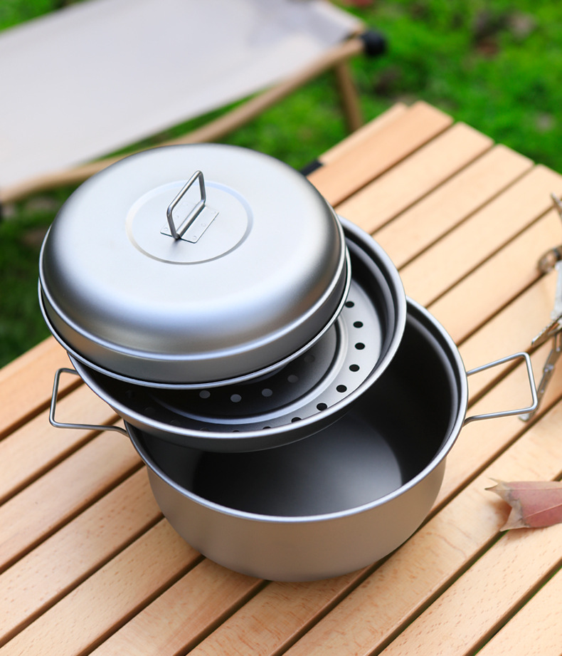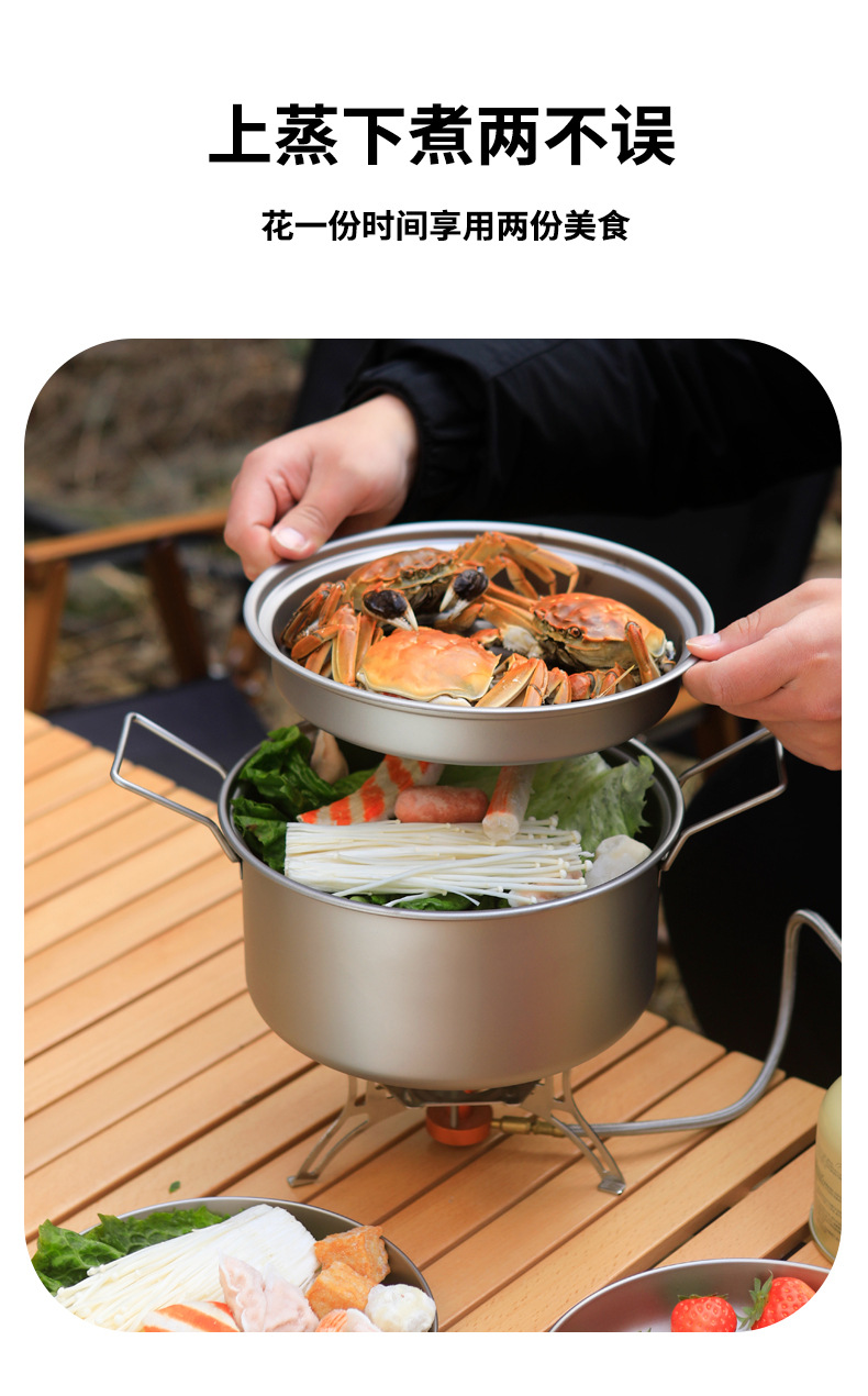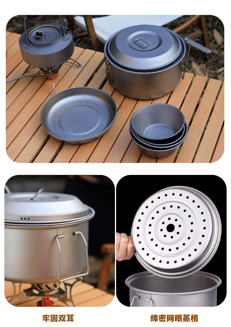 야외 대용량 순수 티타늄 수프 냄비 캠핑 티타늄 냄비 세트 찜통 경량 휴대용 캠핑 가정용 티타늄 식기 2.8L