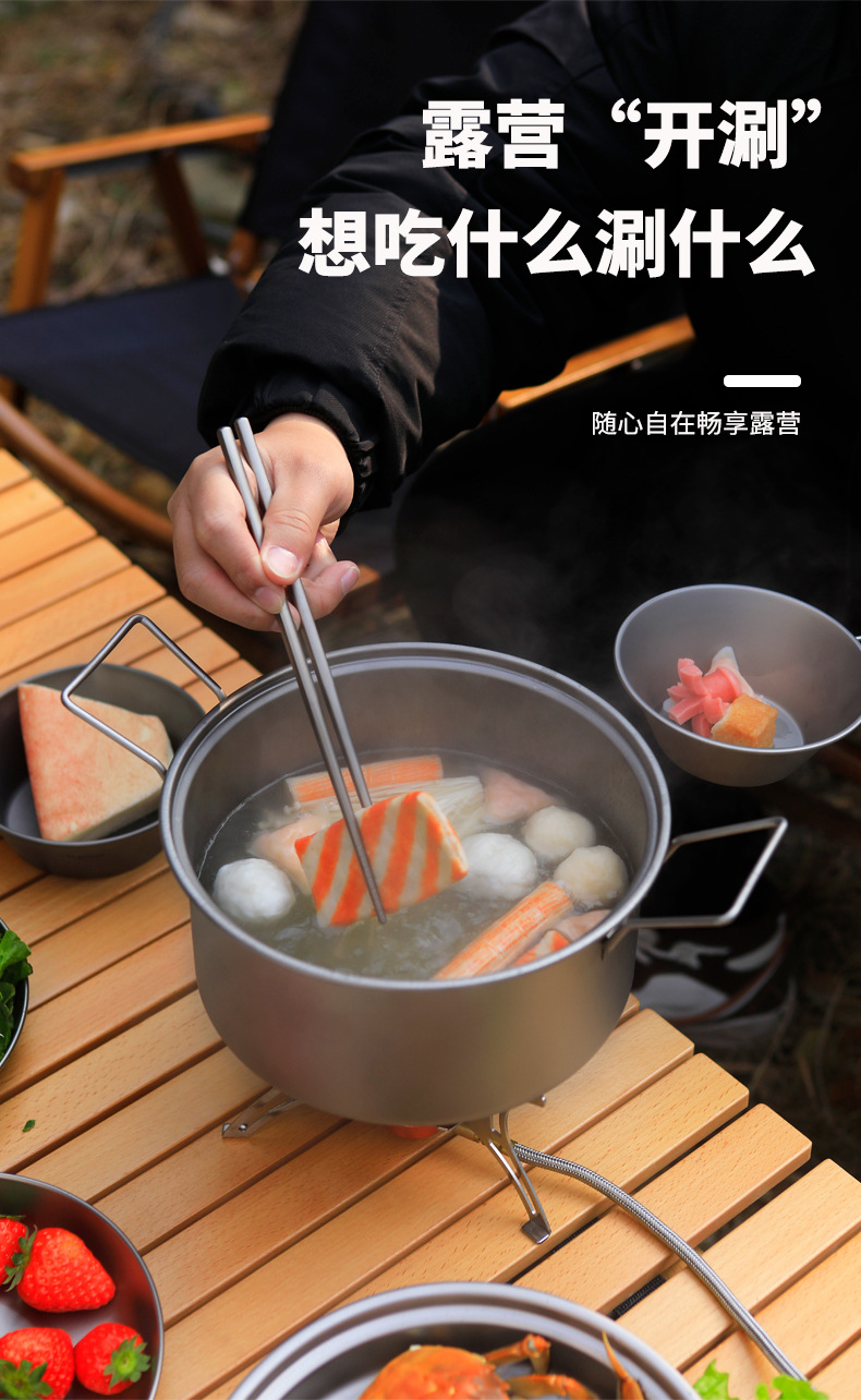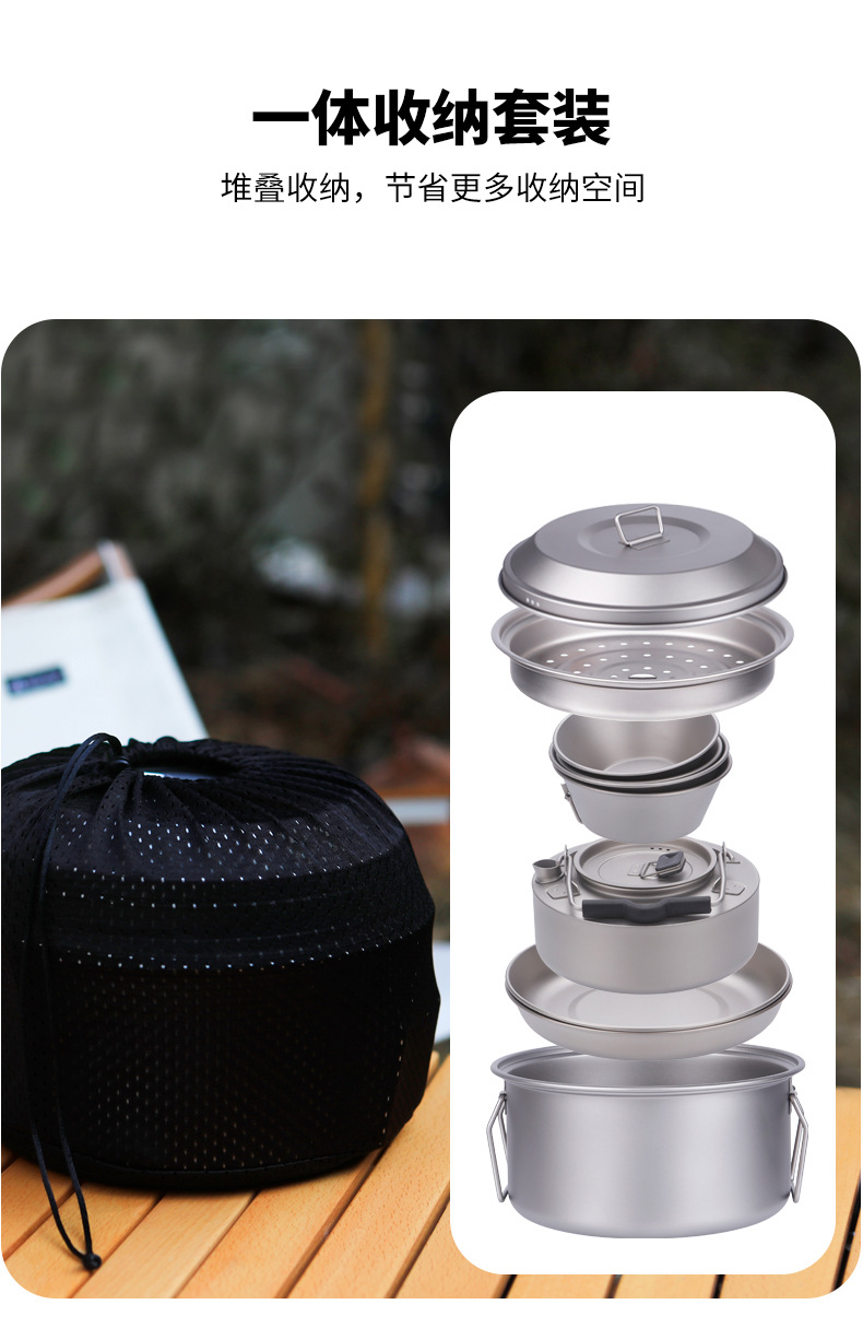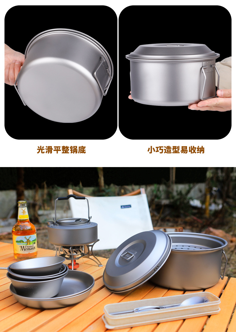 야외 대용량 순수 티타늄 수프 냄비 캠핑 티타늄 냄비 세트 찜통 경량 휴대용 캠핑 가정용 티타늄 식기 2.8L스토어 가기