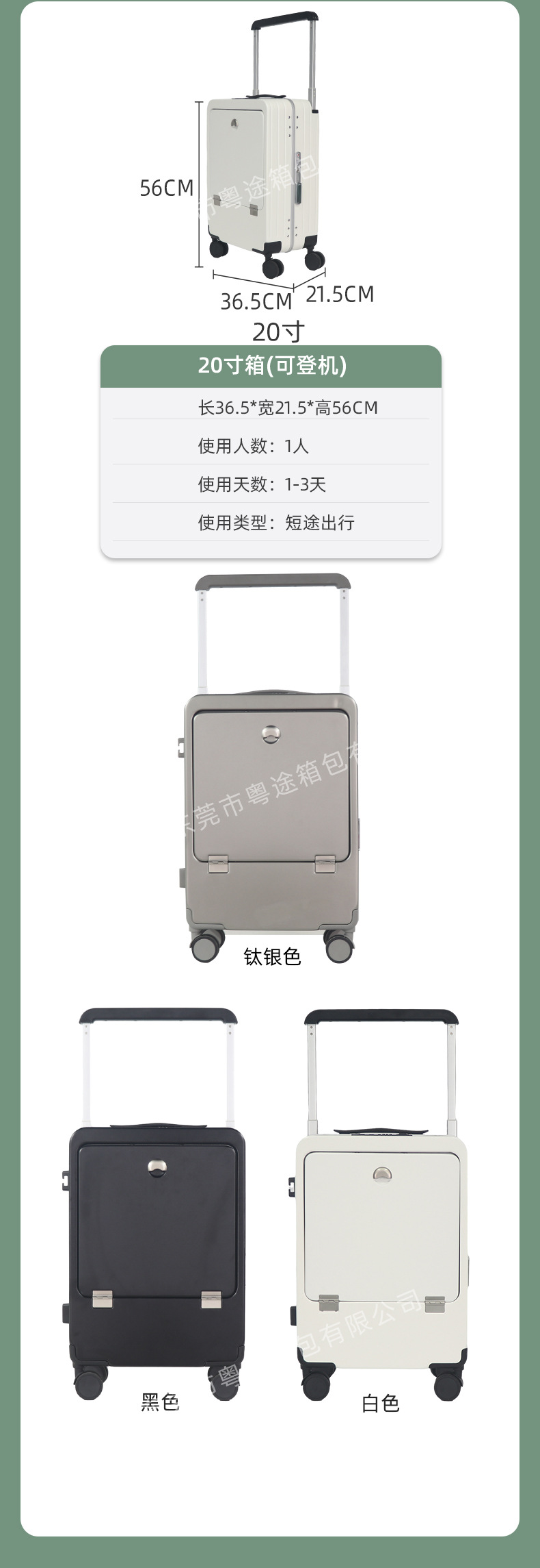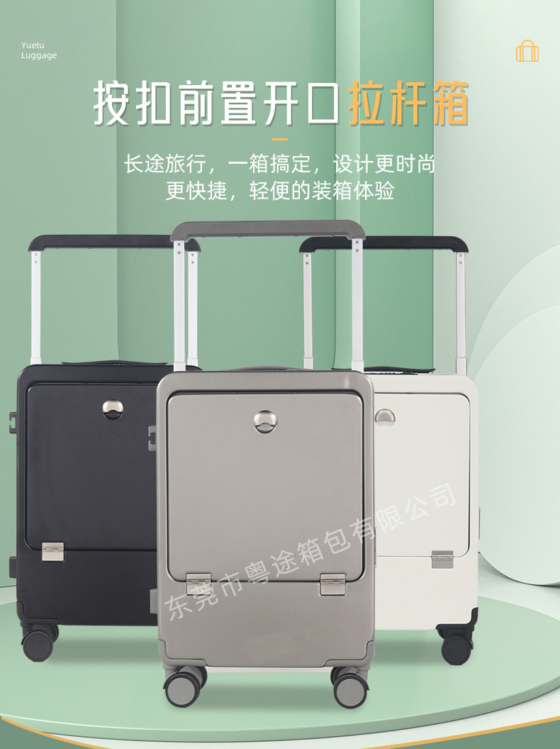 전면 오픈 뚜껑 비즈니스 트롤리 케이스 다기능 Type-c 충전 비밀번호 박스 트롤리 케이스 20 인치 탑승 수하물